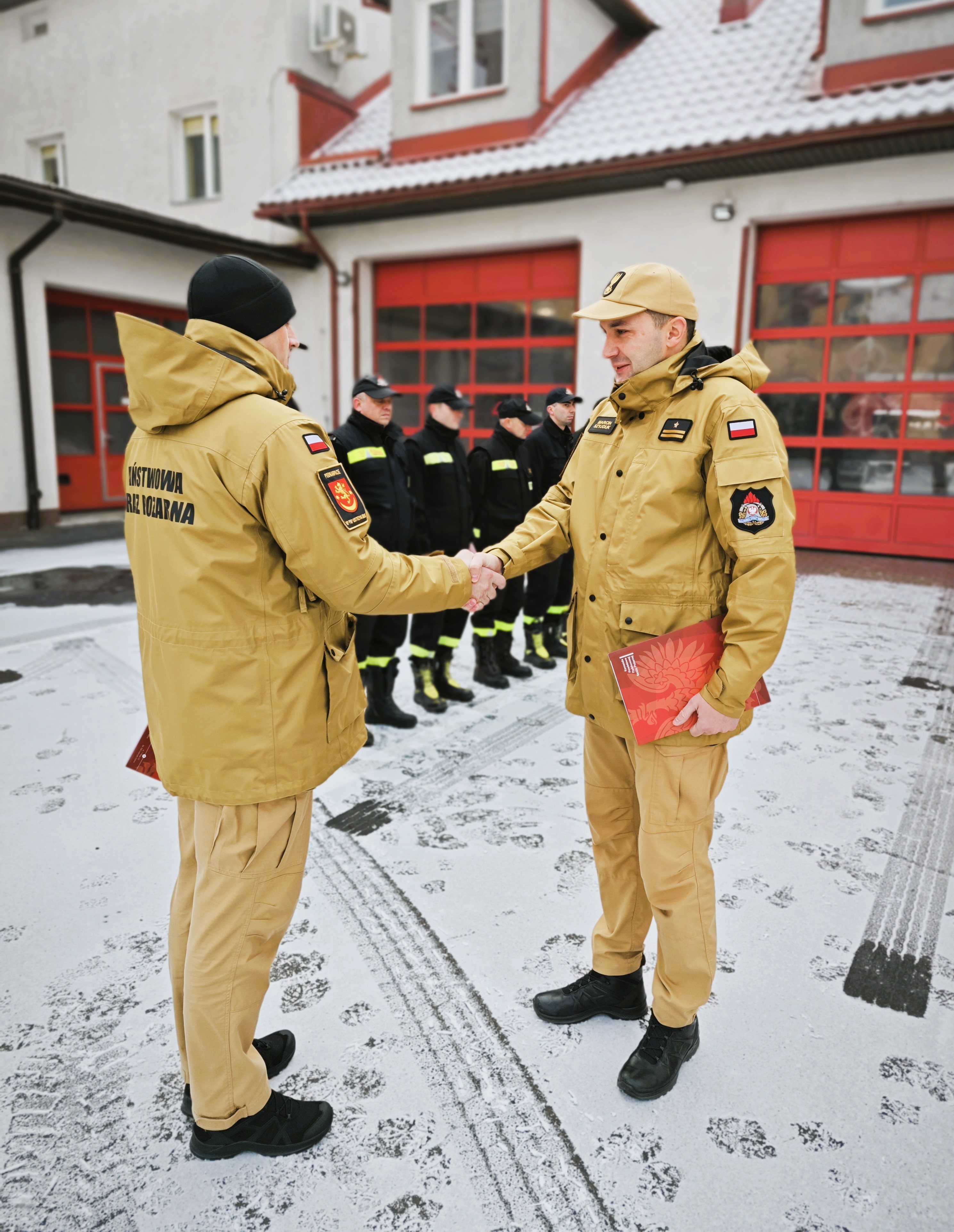 23 listopada br. podczas zmiany służby bryg. Emil Szmyd - Komendant Powiatowy PSP w Ustrzykach Dolnych, wręczył nagrody przyznane decyzją Podkarpackiego Komendata Wojewódzkiego za wzorowe wykonywanie obowiązków służbowych dwóm funkcjonariuszom tj. mł. bryg. Marcinowi Szyjdukowi - zastępcy komendanta powiatowego oraz mł. bryg. Dariuszowi Dacko - dowódcy jednostki ratowniczo-gaśniczej.