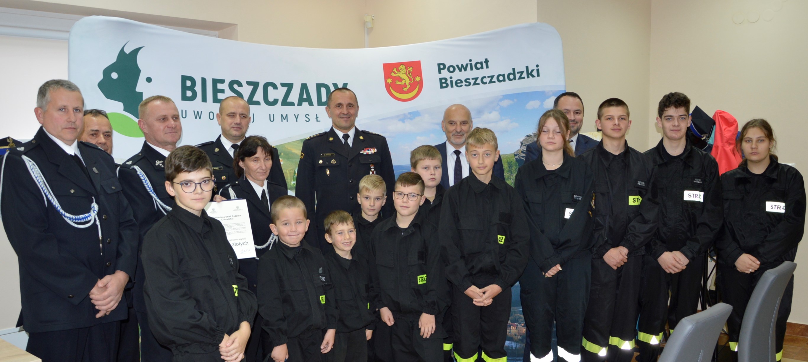 W uroczystej zbiórce uczestniczyli: zastępca podkarpackiego komendanta wojewódzkiego PSP st. bryg. Daniel Dryniak, komendant powiatowy PSP w Ustrzykach Dolnych mł. bryg. Emil Szmyd, starosta powiatu bieszczadzkiego Pan Marek Andruch, vice starosta powiatu bieszczadzkiego Pan Artur Woźny, prezes Zarządu Oddziału Powiatowego ZOSP RP dh Stanisław Niedźwiecki oraz przedstawicie MDP powiatu bieszczadzkiego.