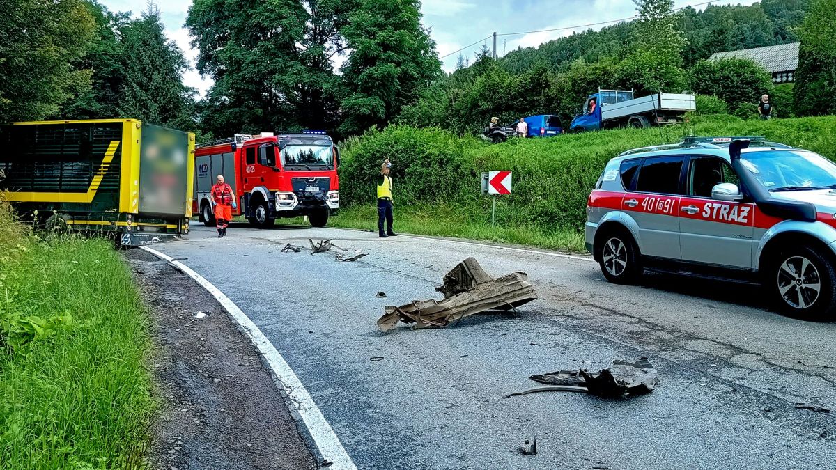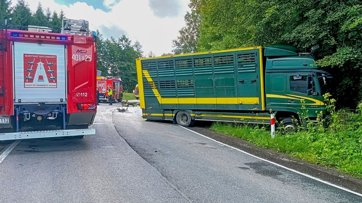 Dziś, około godziny 10:00, w miejscowości Hoszów (gm. Ustrzyki Dolne), na łuku drogi wojewódzkiej DW896 (na 7. kilometrze trasy), doszło do poważnego zderzenia czołowego samochodu osobowego z pojazdem ciężarowym przeznaczonym do transportu zwierząt hodowlanych.