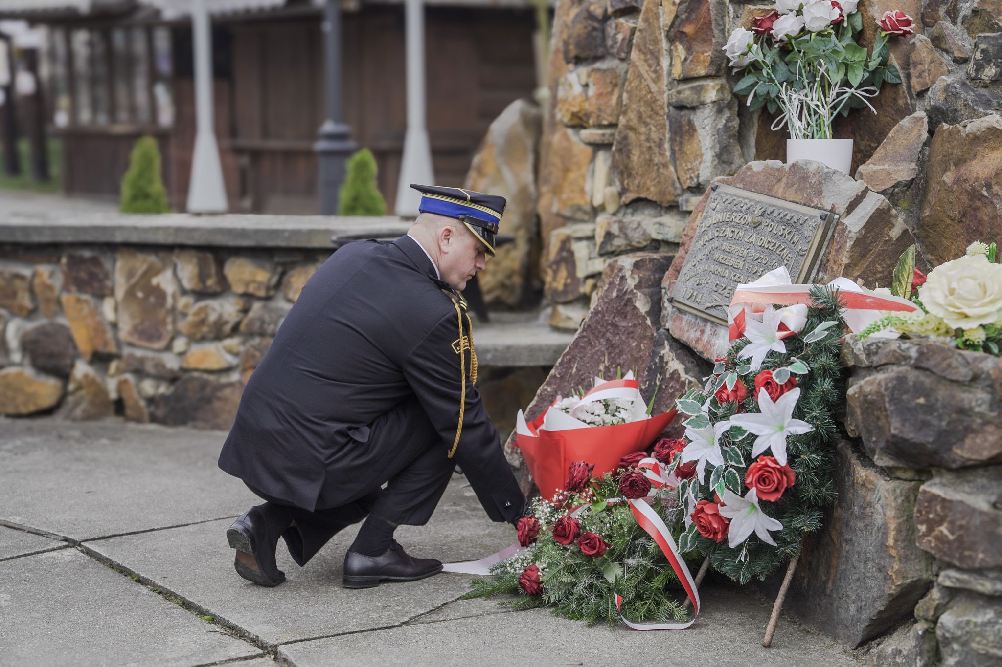 1 marca, z okazji Dnia Żołnierzy Wyklętych, delegacja Komendy Powiatowej Państwowej Straży Pożarnej w Ustrzykach Dolnych złożyła kwiaty pod pomnikiem żołnierzy walczących o ojczyznę