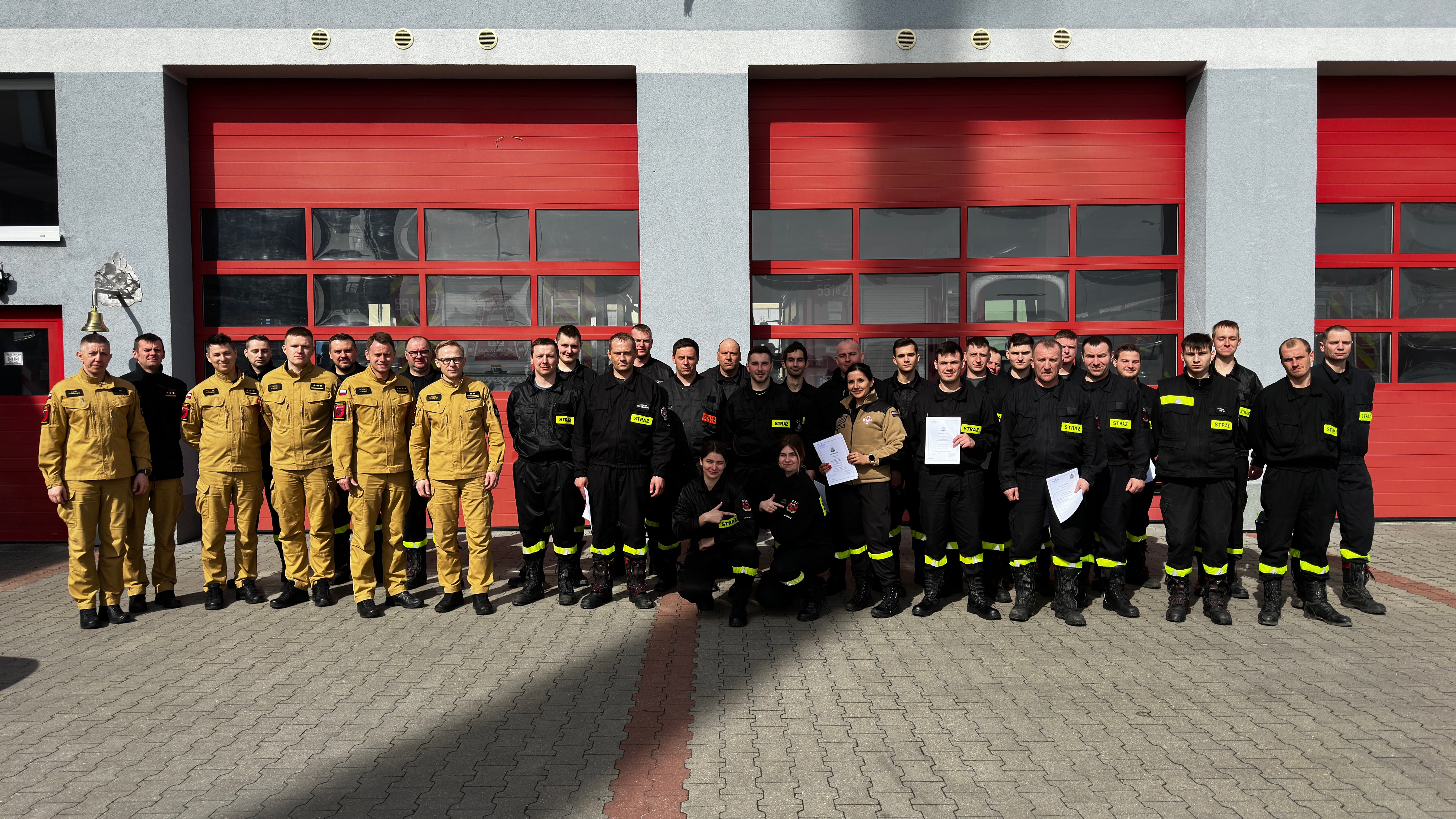 W środę 27 marca 2024 r. zakończyło się trwające ponad dwa miesiące Szkolenie podstawowe strażaka ratownika Ochotniczych Straży Pożarnych, którego celem było przygotowanie słuchaczy do udziału w działaniach ratowniczo-gaśniczych. W szkoleniu uczestniczyli strażacy z powiatu wąbrzeskiego, którzy w ramach kursu zrealizowali także, szkolenie z zakresu współdziałania z LPR oraz zaliczyli test w komorze dymowej.
