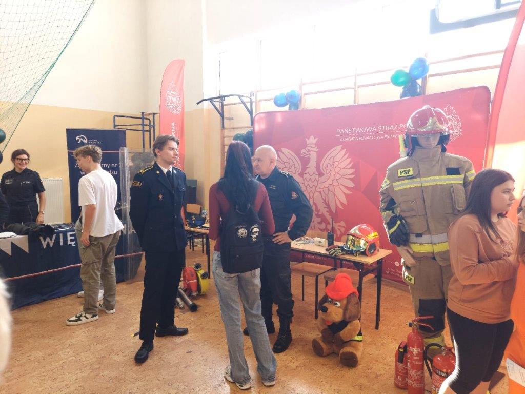 w dniu 17 września delegacja naszej komendy na czele z Zastępcą Komendanta Powiatowego PSP w Wąbrzeźnie bryg. Piotrem Rogowskim brała udział w Festiwalu Służb Mundurowych, którego organizatorem był Powiatowy Urząd Pracy w Wąbrzeźnie. Targi odbyły się na terenie Zespołu Szkół w Wąbrzeźnie i skierowane były do młodych osób chcących poznać szczegóły procesu rekrutacji oraz dowiedzieć się więcej na czym polega służba w zawodach mundurowych.