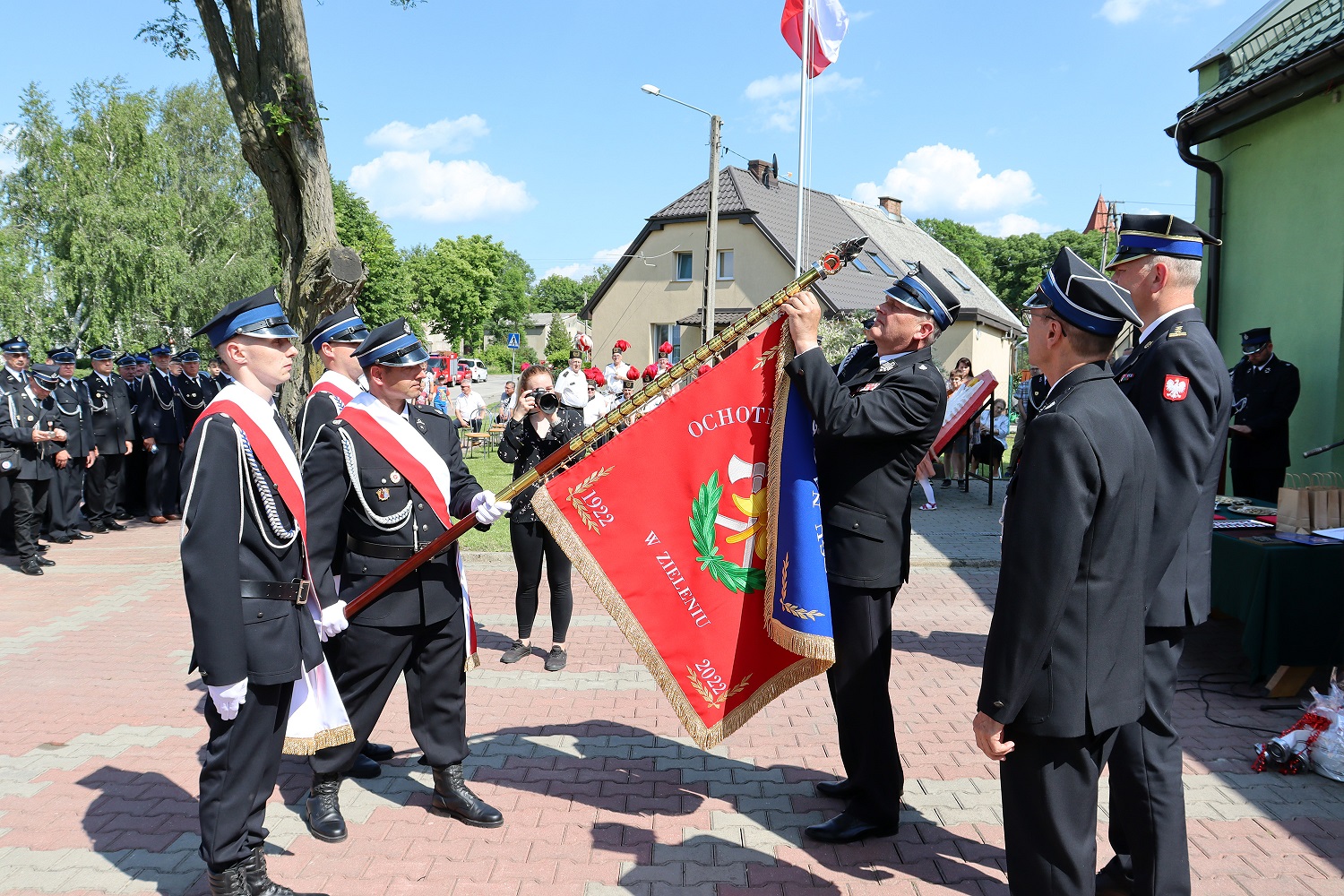 Podczas uroczystości został wręczony nowy sztandar dla jednostki Ochotniczej Straży Pożarnej w Zieleniu. Wielu druhów otrzymało także odznaczenia.