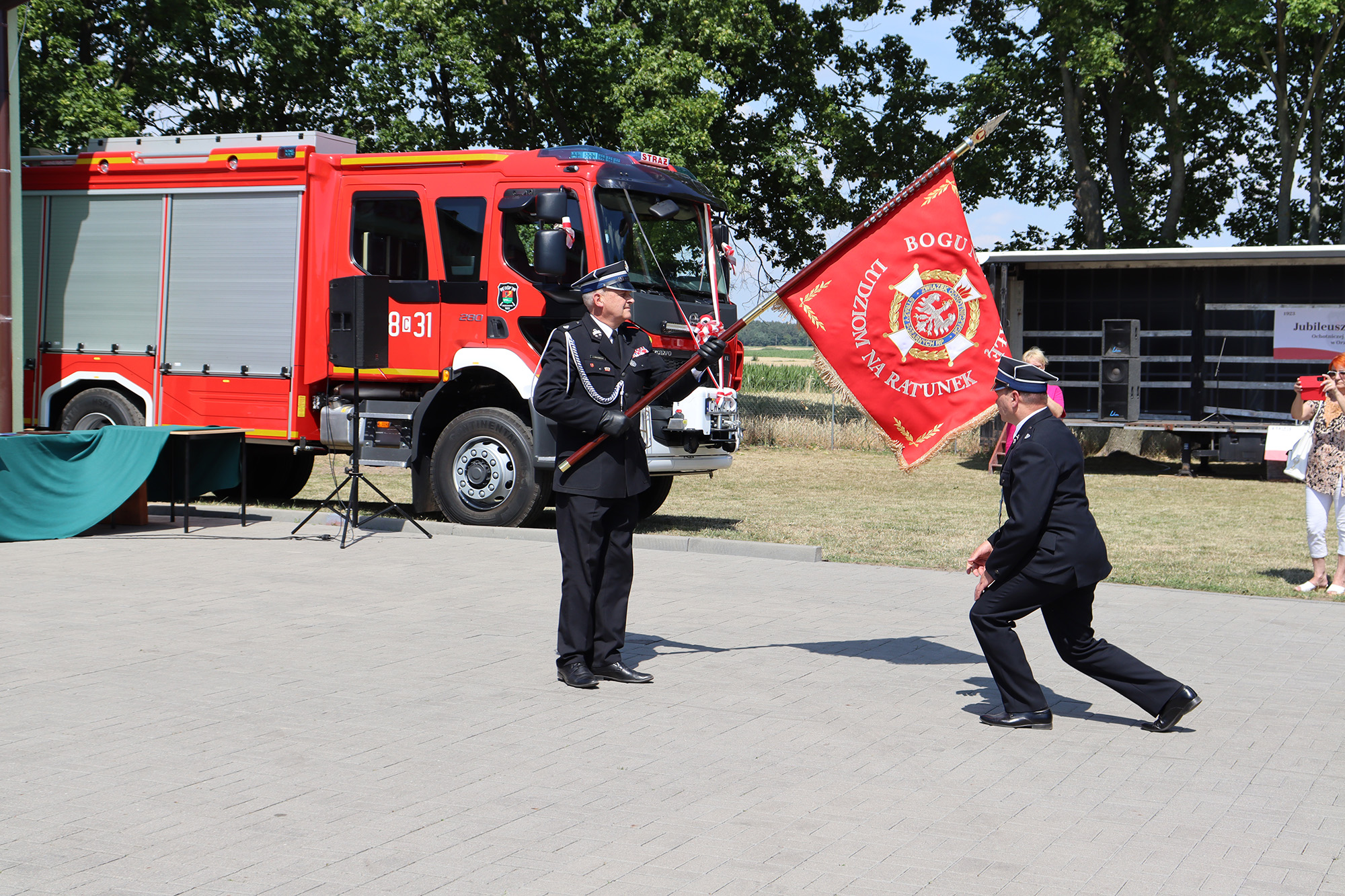 Był to ważny dzień dla druhów z miejscowej jednostki, ponieważ poświęcono i przekazano im nowy sztandar ufundowany przez Społeczny Komitet, a także nowy średni samochód ratowniczo-gaśniczy.