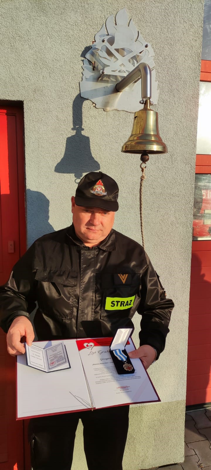 St.ogn. Grzegorz Mucha uhonorowany został ministerialnym orderem „Honorowego Dawcy Krwi – Zasłużony dla Zdrowia Narodu”. To niezwykle ważne i prestiżowe odznaczenie nadawane honorowym dawcom krwi w uznaniu wybitnych zasług na rzecz ratowania ludzkiego życia i zdrowia oraz aktywnej działalności w ruchu honorowego krwiodawstwa. Obok niesienia pomocy ludziom wykonując na co dzień pracę strażaka, od ponad 20 lat dzieli się z innymi tym co posiada najcenniejszego – własną krwią. Dla ratowania ludzkiego zdrowia i życia ma za sobą 46 pobrań krwi i jej składników, co daje ponad 21 litrów.