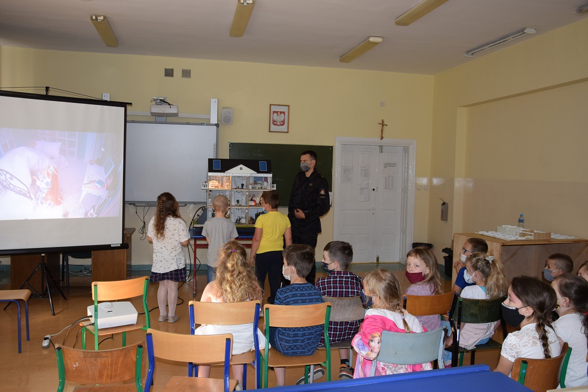 W dniach 08-16.06.2021 r. w Szkole Podstawowej im. H. Sienkiewicza w Książkach oraz Zespole Szkolno-Przedszkolnym w Płużnicy przedstawiciele KP PSP Wąbrzeźno prowadzili zajęcia w ramach prewencji społecznej. Do zajęć wykorzystano Mobilny Symulator Zagrożeń Pożarowych.