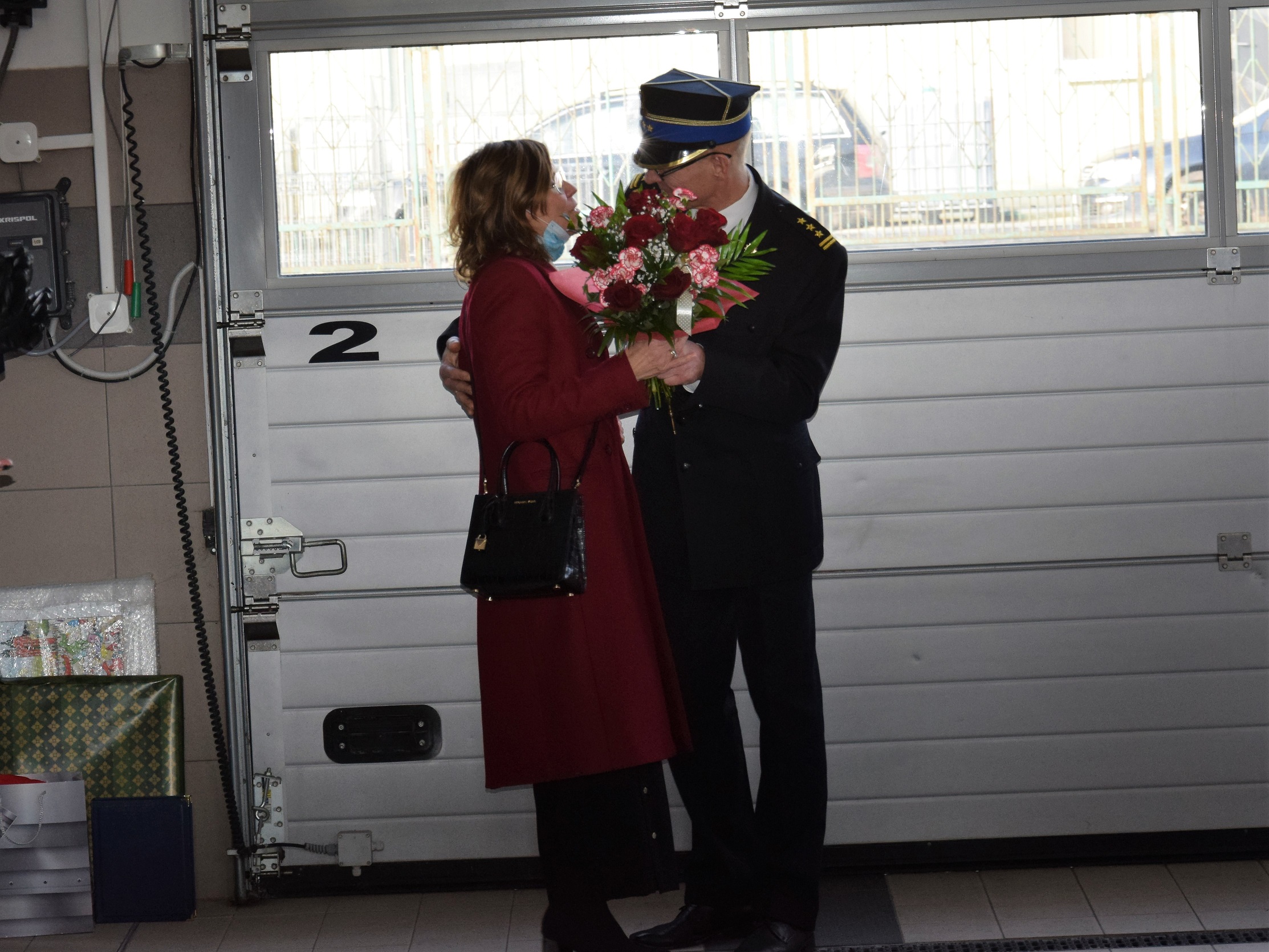 Po odczytaniu decyzji oraz pożegnaniu się st.bryg. Janusza Woźniaka ze Sztandarem Komendy Powiatowej PSP w Wąbrzeźnie słowa podziękowania za niemal 40 letnią służbę przekazał Kujawsko-Pomorski Komendant Wojewódzki PSP st. bryg. Jacek Kaczmarek. Następnie wiele ciepłych słów oraz życzeń przekazali zaproszeni goście.