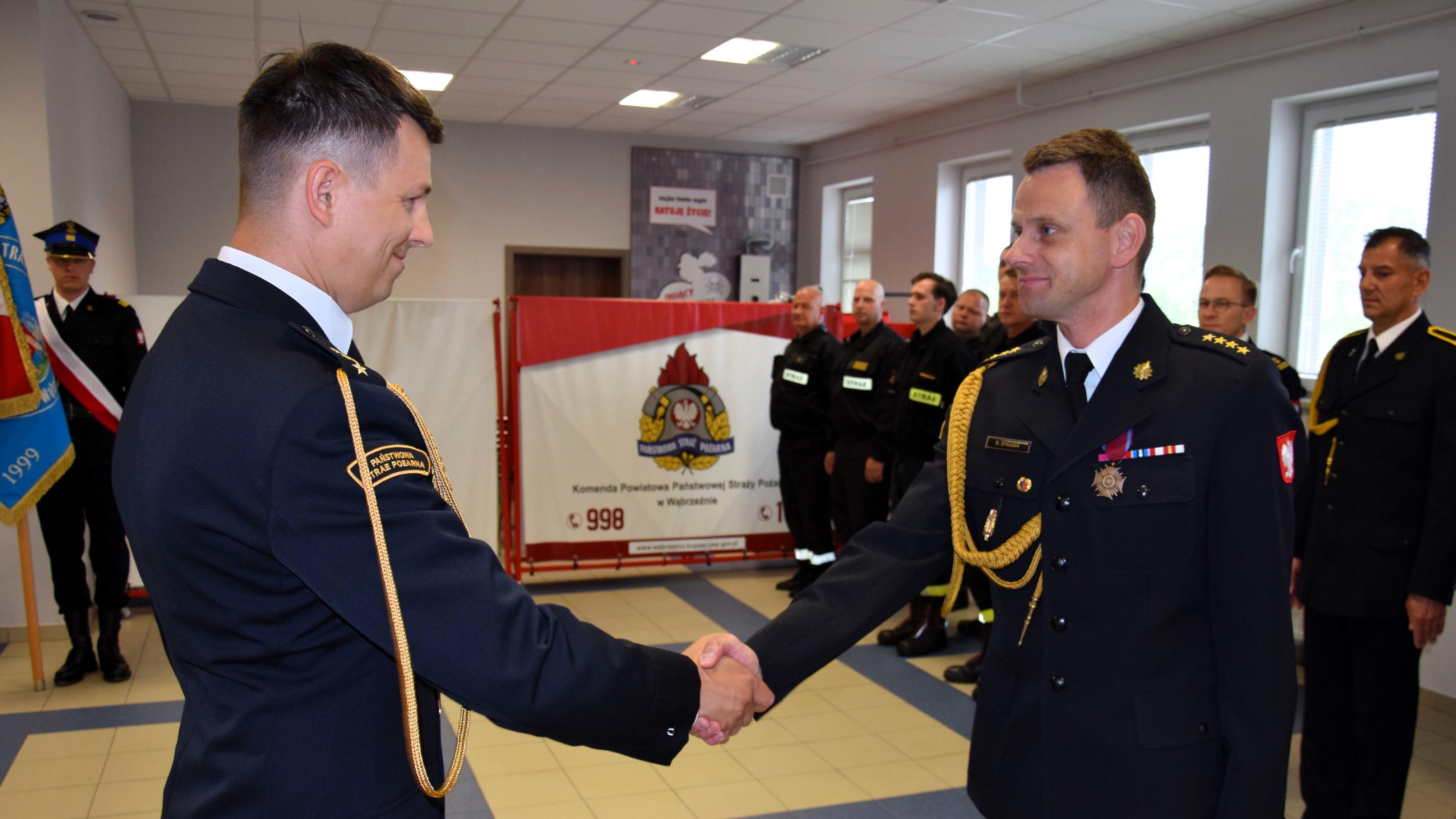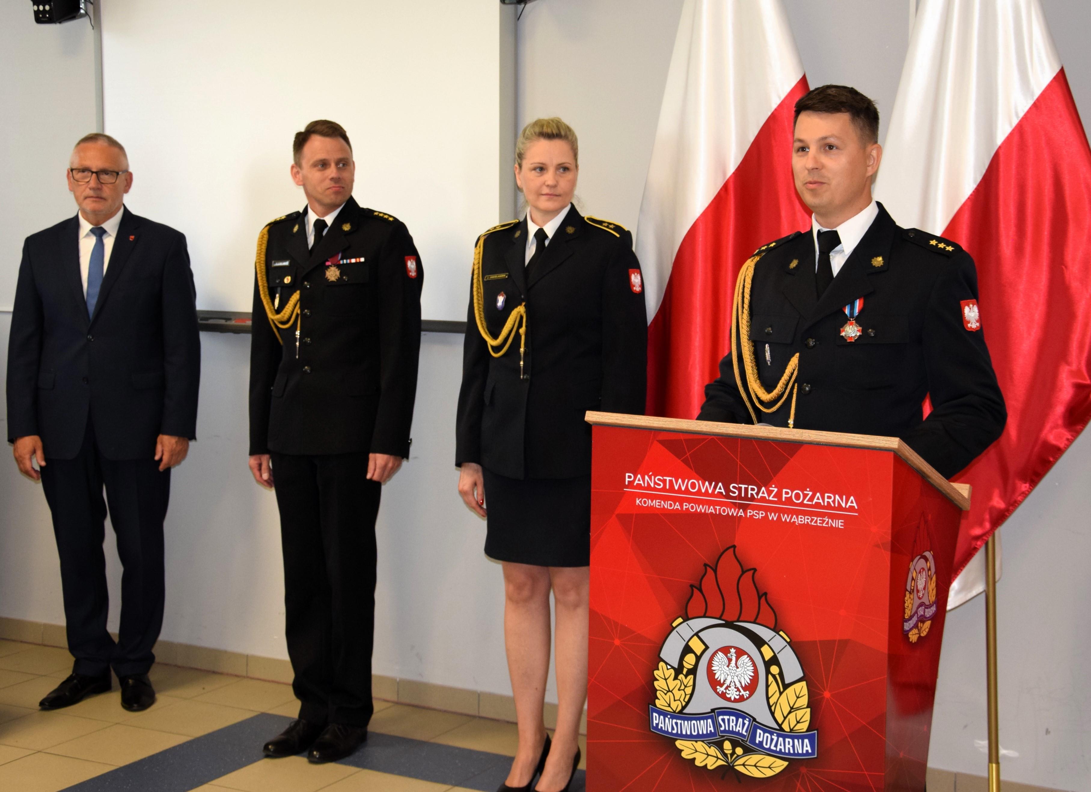 29 maja 2024 r. w Komendzie Powiatowej Państwowej Straży Pożarnej w Wąbrzeźnie odbyła się uroczysta zbiórka, podczas której Komendant Powiatowy PSP w Wąbrzeźnie wręczył kpt. Tomaszowi Kowalikowi decyzję o mianowaniu z dniem 1 czerwca br. na stanowisko Dowódcy Jednostki Ratowniczo-Gaśniczej w Wąbrzeźnie.