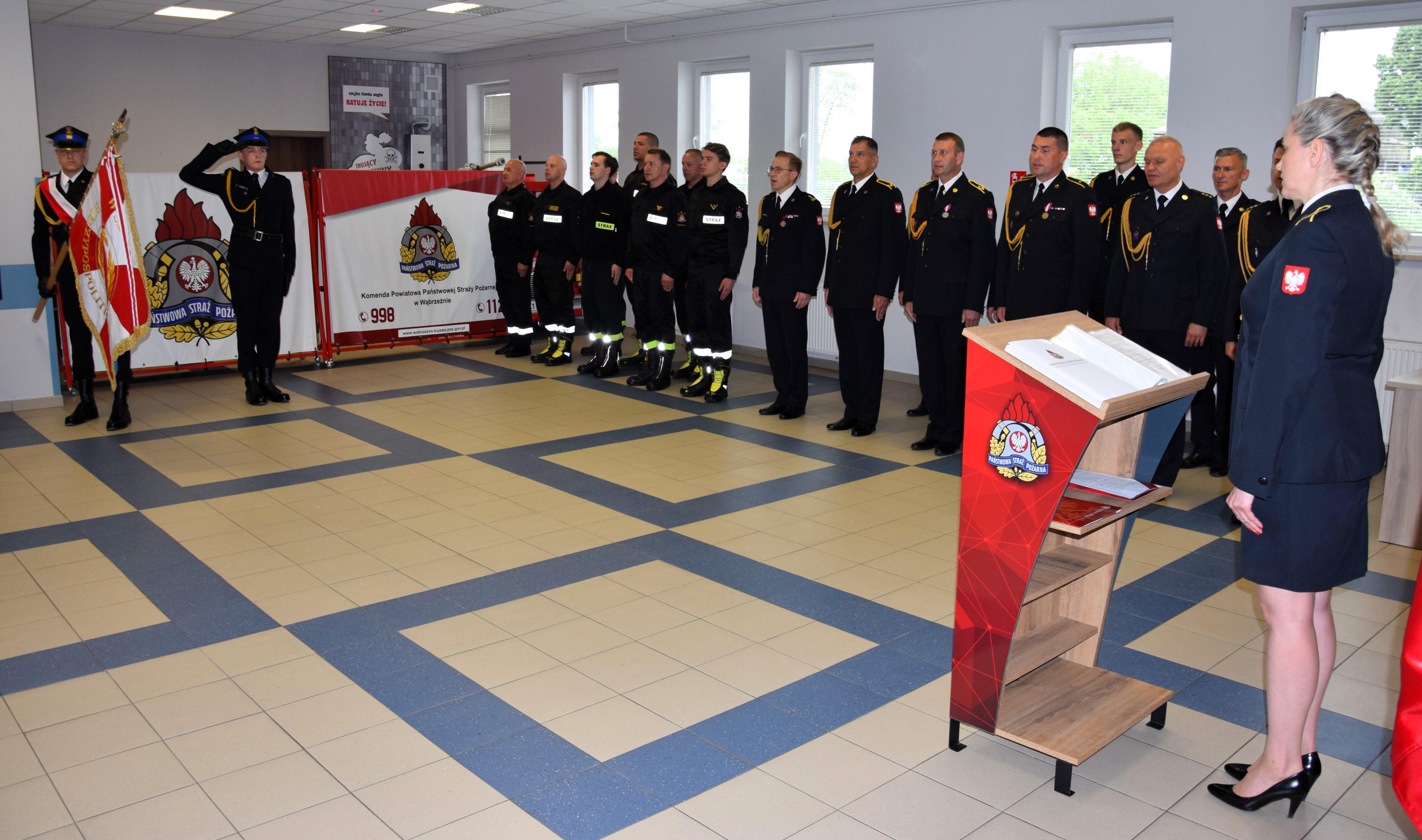 Uroczysta zbiórka z okazji mianowania na stanowisko Dowódcy Jednostki Ratowniczo-Gaśniczej w Wąbrzeźnie