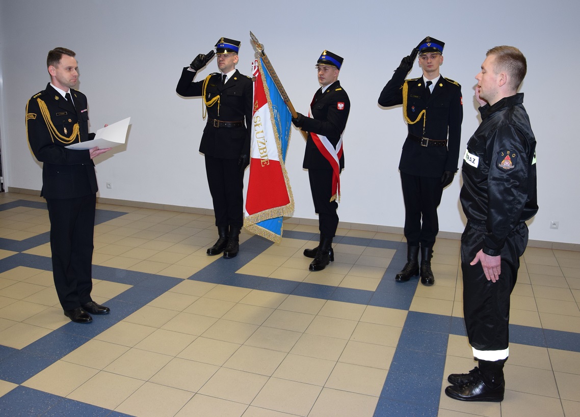 W tym samym dniu odbyła się również uroczystość ślubowania strażaka str. Dawida Dyląga. Ślubowanie w obecności strażaków komendy przyjął Komendant Powiatowego Państwowej Straży Pożarnej w Wąbrzeźnie st.kpt. Robert Stasiak.