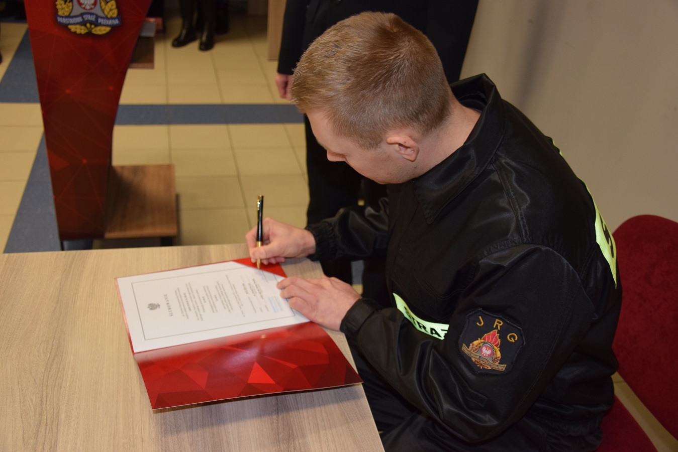Zgodnie z ustawą z dnia 24 sierpnia 1991 roku o Państwowej Straży Pożarnej, każdy strażak przed przystąpieniem do służby zobowiązany jest do złożenia ślubowania. Jest to uroczysta, podniosła chwila w życiu każdego strażaka stanowiąca symbol pełnego włączenia w szeregi Państwowej Straży Pożarnej.