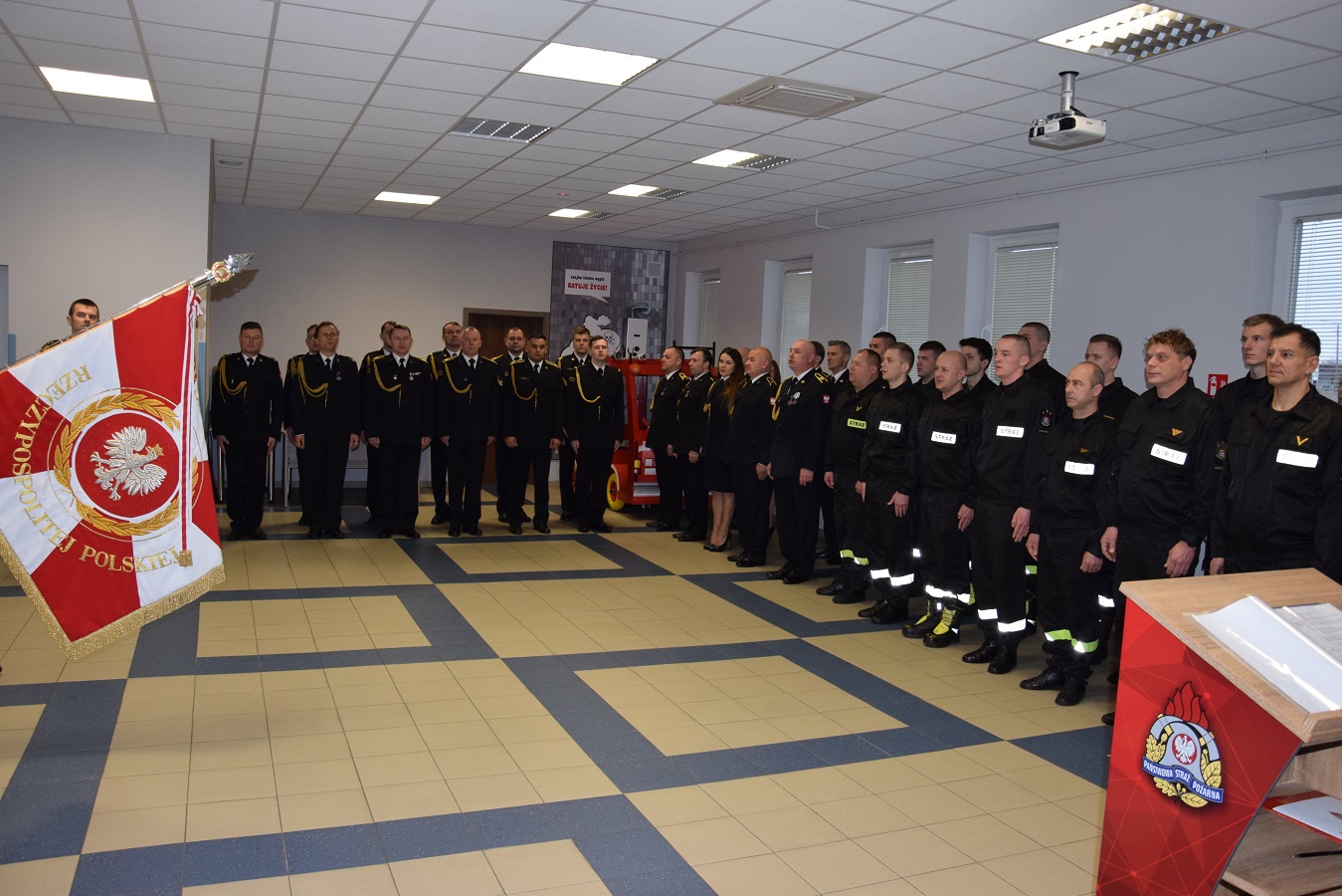 Uroczyste pożegnanie ze służbą st.ogn. Grzegorza Muchy oraz ślubowanie strażaka Dawida Dyląga
