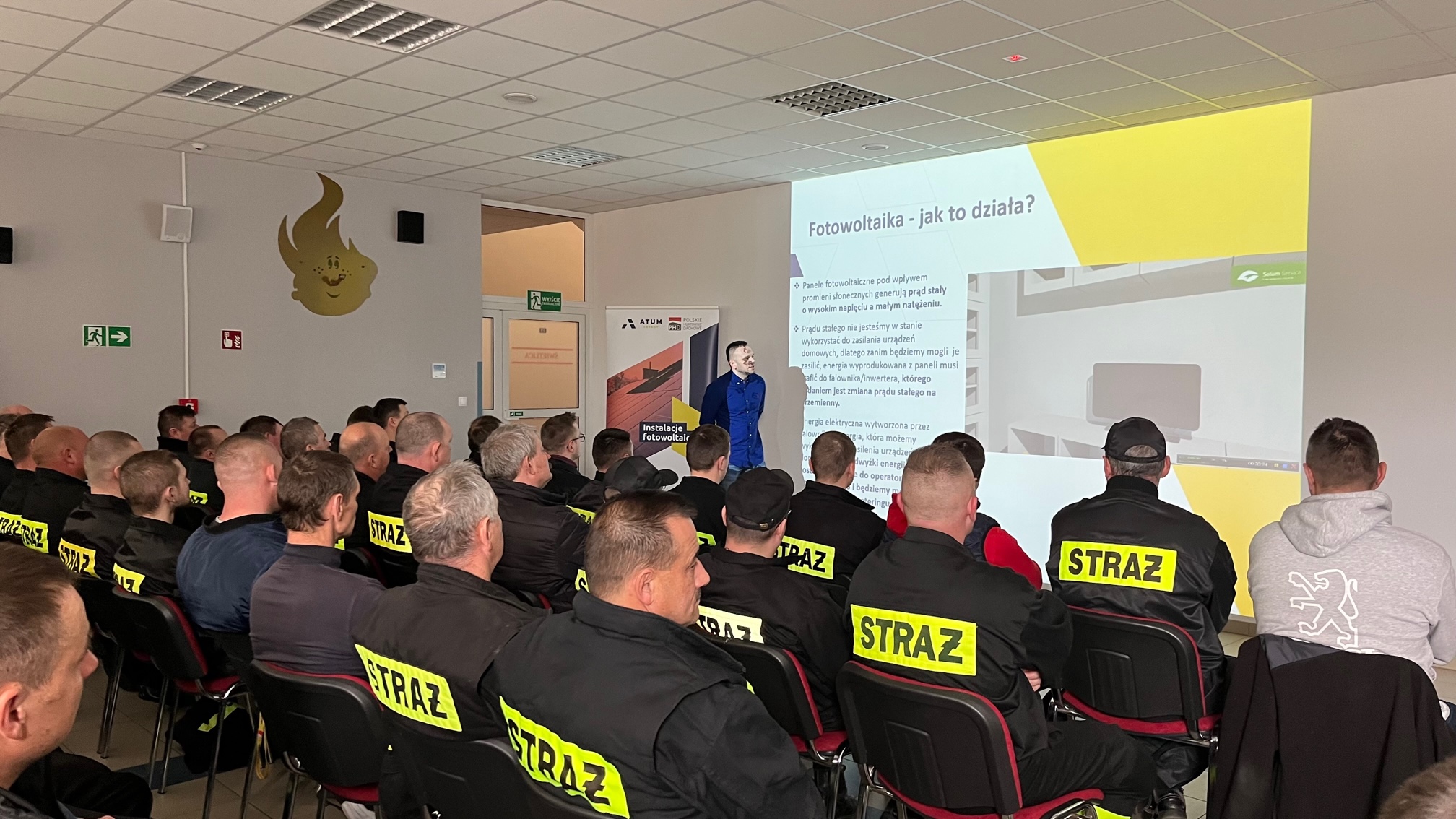 W dniu 21 kwietnia br. w obiekcie Komendy Powiatowej PSP w Wąbrzeźnie odbyło się szkolenie w formie wykładu oraz pokazu, adresowane dla druhów Ochotniczych Straży Pożarnej z terenu Powiatu Wąbrzeskiego oraz strażaków miejscowej komendy, które dotyczyło stosowania prawidłowych zasad ratowniczo - gaśniczych dotyczących zdarzeń, które mogą wystąpić podczas awaryjnych sytuacji i pożarów związanych z instalacjami fotowoltaicznymi. Szkolenie otworzył Komendant Powiatowy kpt. Robert Stasiak, a poprowadził je przedstawiciel firmy Atum Energy SP. z o.o. z Łodzi oraz Zastępca dowódcy Jednostki Ratowniczo – Gaśniczej mł. kpt. Tomasz Kowalik. W zajęciach szkoleniowych brało udział 64 uczestników.