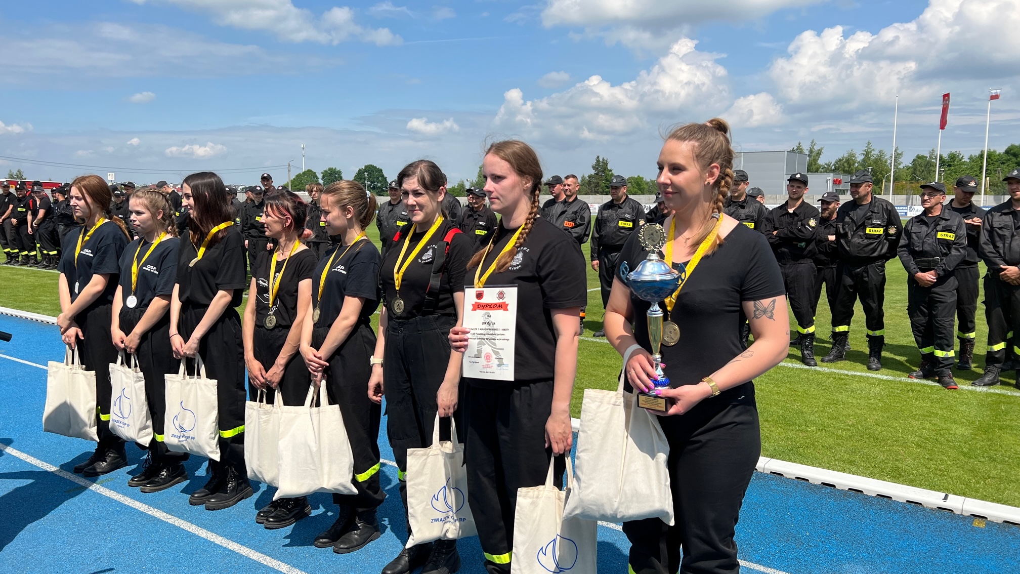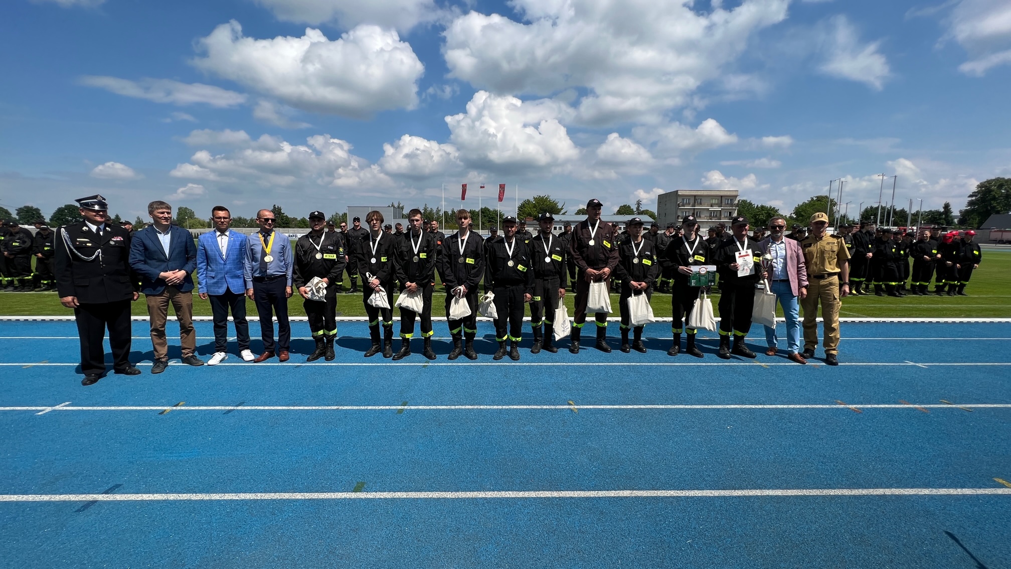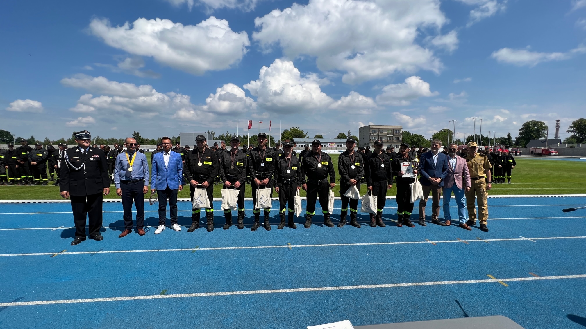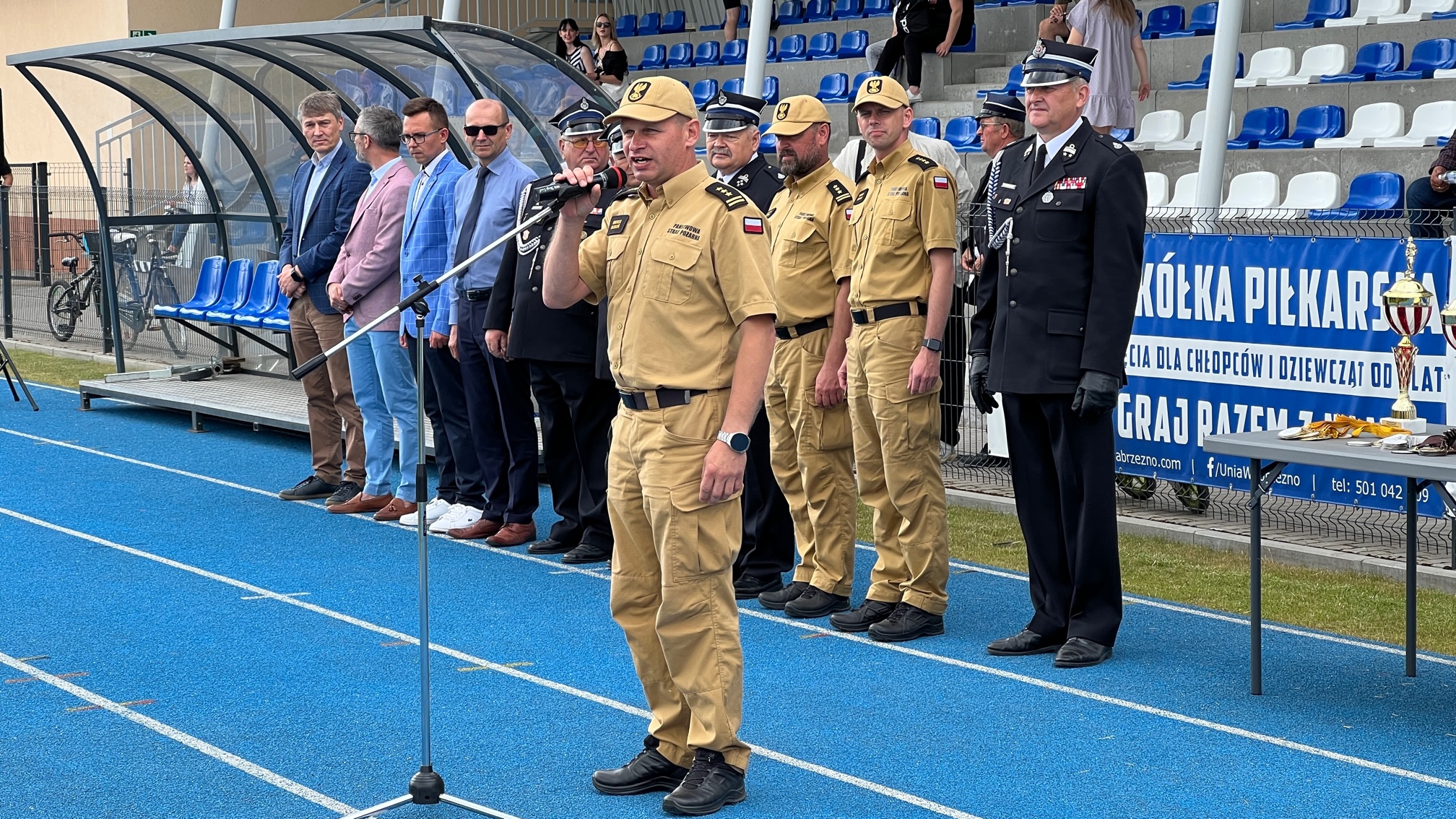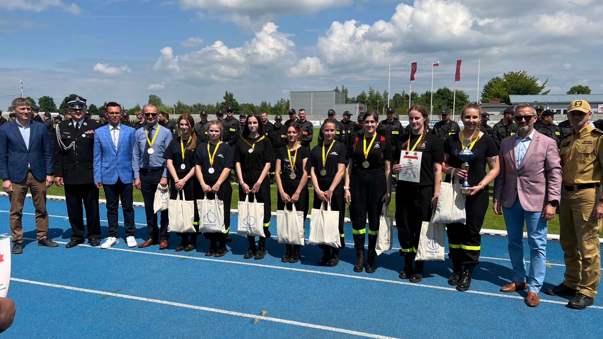 17 czerwca 2023 roku na Stadionie Miejskim im. Jana Wesołowskiego w Wąbrzeźnie, odbyły się XI Powiatowe Zawody Sportowo-Pożarnicze Ochotniczych Straży Pożarnych. Po wprowadzeniu startujących drużyn na płytę stadionu dowódca pododdziałów dh. Sławomir Szmytkowski złożył meldunek o gotowości do rozpoczęcia zawodów Prezesowi Prezydium Zarządu Oddziału Wojewódzkiego dh. Jarosławowi Herbowskiemu, który przywitał przybyłych gości w osobach: