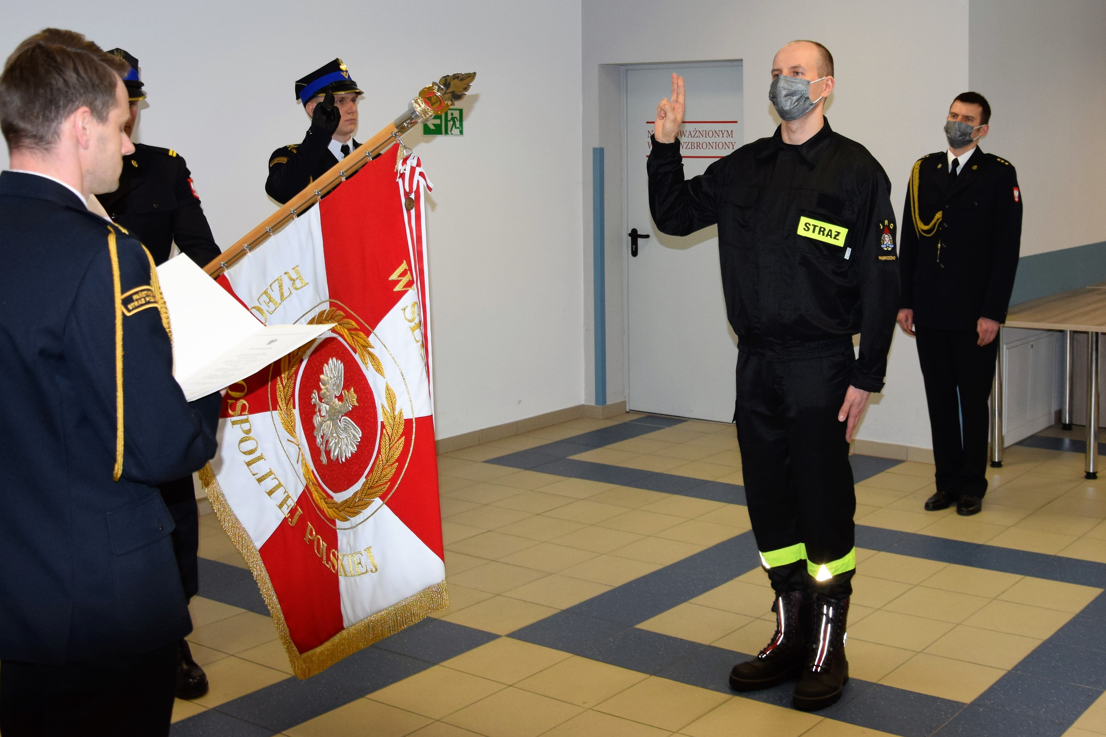 Zgodnie z ustawą z dnia 24 sierpnia 1991 roku o Państwowej Straży Pożarnej, każdy strażak przed przystąpieniem do służby zobowiązany jest do złożenia ślubowania. Jest to uroczysta, podniosła chwila w życiu strażaka stanowiąca symbol pełnego włączenia w szeregi Państwowej Straży Pożarnej.