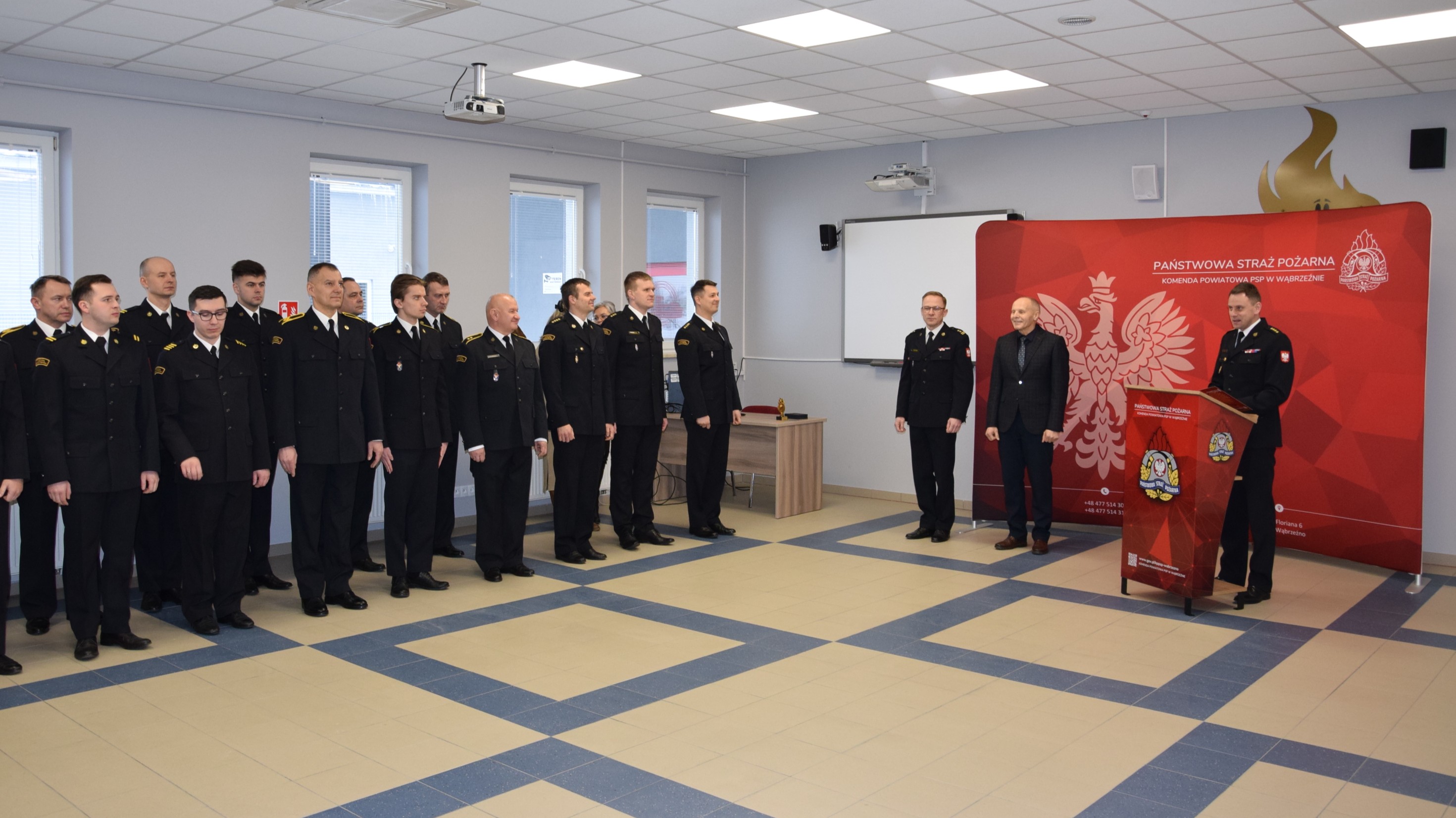 23 stycznia 2026 roku w Komendzie Powiatowej PSP w Wąbrzeźnie odbyła się zbiórka z okazji zakończenia pracy Pana Witolda Miklikowskiego. Dzisiejsza uroczystość miała dla naszej komendy charakter wyjątkowy. Pożegnaliśmy osobę, która przez dziesięciolecia współtworzyła naszą jednostkę, jej historię, tradycję i codzienne funkcjonowanie. Pan Witold Miklikowski swoją przygodę w ochronie przeciwpożarowej rozpoczął w 1978 roku, do naszej komendy trafił w roku 1980 i pełnił w niej służbę z pełnym zaangażowaniem, poczuciem odpowiedzialności i dyspozycyjnością ponad 30 lat. Po zakończeniu służby mundurowej, w lutym 2009 roku, nie powiedział „do widzenia” Państwowej Straży Pożarnej, a jedynie zmienił mundur na strój cywilny i od września 2009 roku, aż do dnia dzisiejszego, wypełniał obowiązki w sekcji kwatermistrzowskiej.