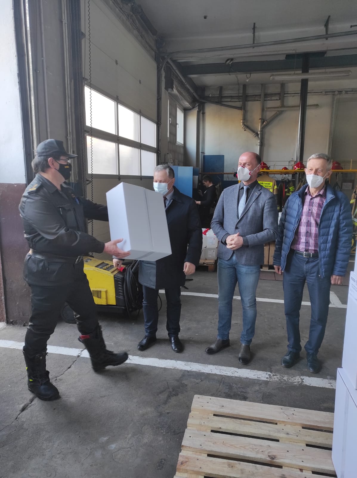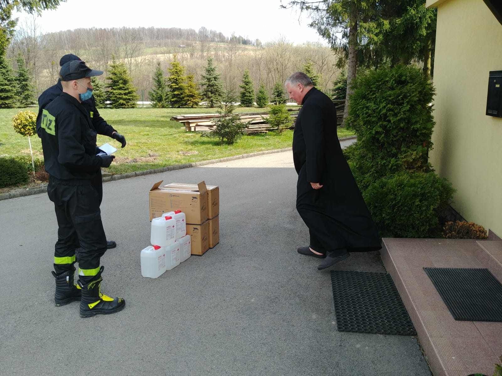 1.04.2021 r., strażacy naszej Komendy oraz druhowie Ochotniczych Straży Pożarnych dostarczyli do wszystkich parafii na terenie powiatu wadowickiego środki ochronne przeciw COVID-19. Przekazano prawie 260 tys. sztuk maseczek ochronnych oraz 1175 litrów płynu do dezynfekcji.