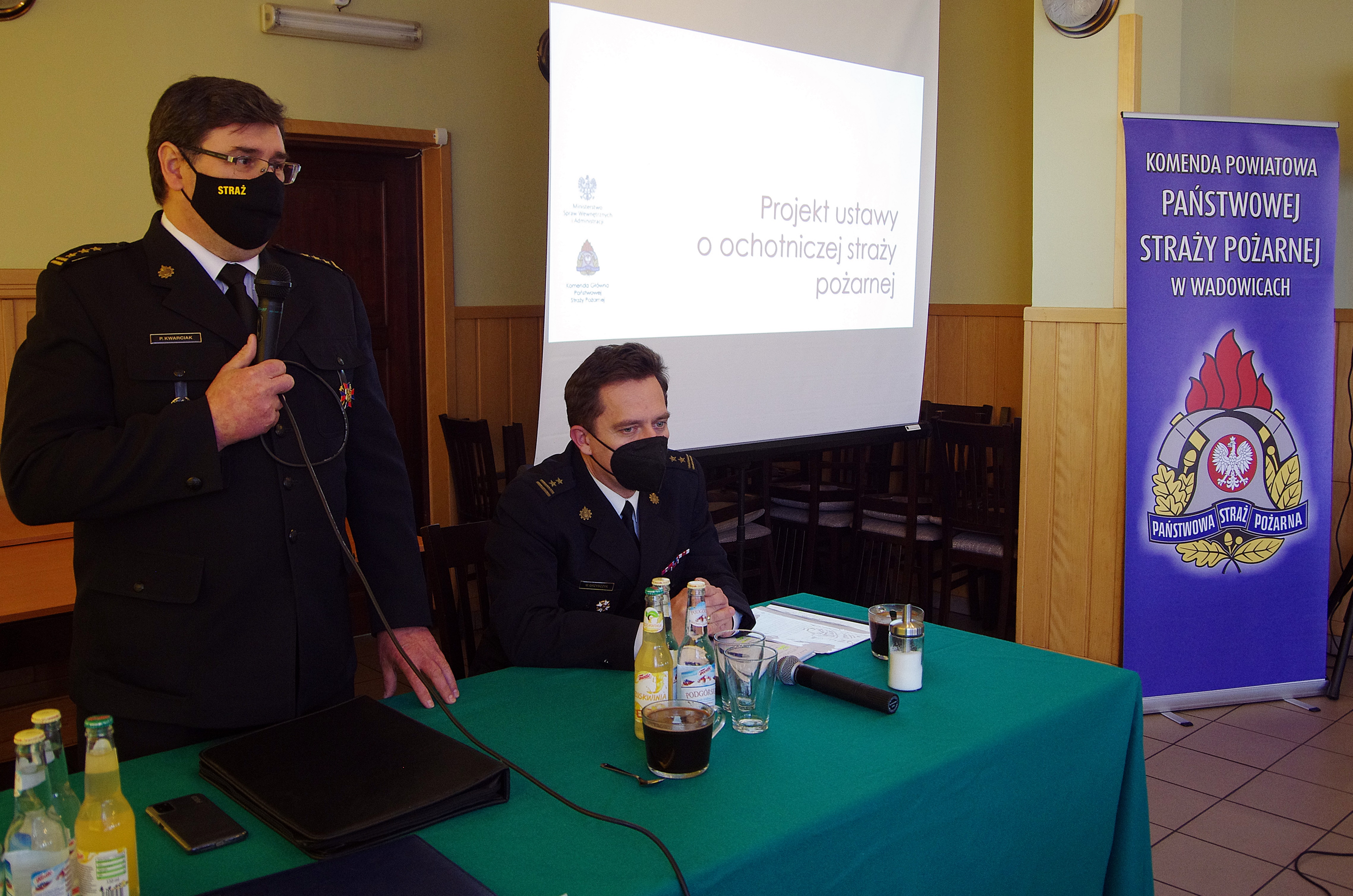 W czasie konsultacji komendant powiatowy PSP w Wadowicach st. bryg. Paweł Kwarciak wraz ze swoim zastępcą bryg. Wojciechem Grzybczykiem przedstawili założenia projektu tej ustawy.