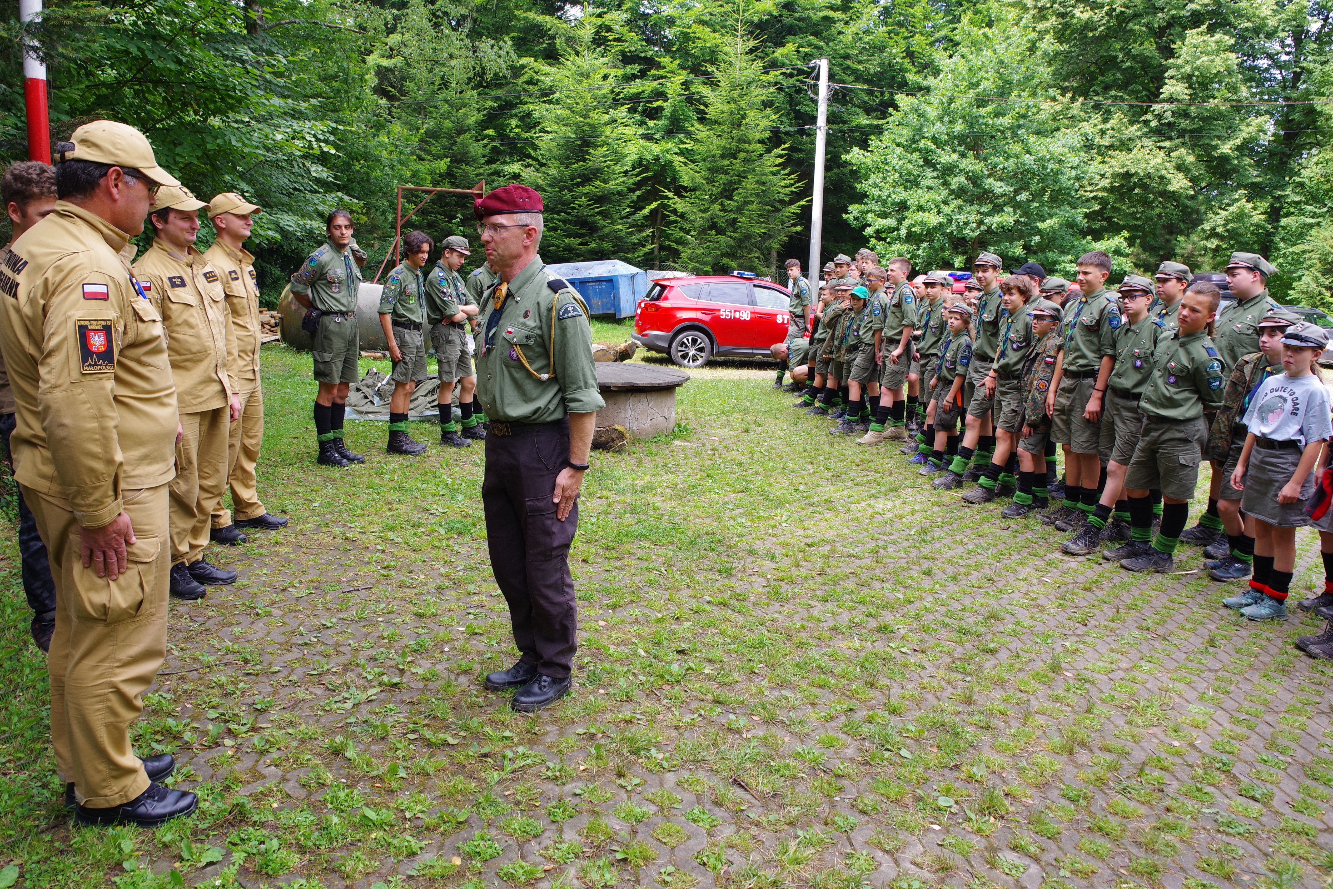 Realizując polecenie Komendanta Głównego Państwowej Straży Pożarnej wydane po podpisaniu w czerwcu 2019 roku „Protokołu uzgodnień w zakresie wzmocnienia bezpieczeństwa na obozach harcerskich pod namiotami” zawartych pomiędzy Komendantem Głównym PSP, Komendantem Głównym Policji, Dyrektorem Generalnym Lasów Państwowych oraz przedstawicielami licznych organizacji harcerskich, strażacy Komendy Powiatowej PSP w Wadowicach przeprowadzają cykl czynności służbowych związanych z zapewnieniem bezpieczeństwa uczestnikom letnich obozów harcerskich pod namiotami.