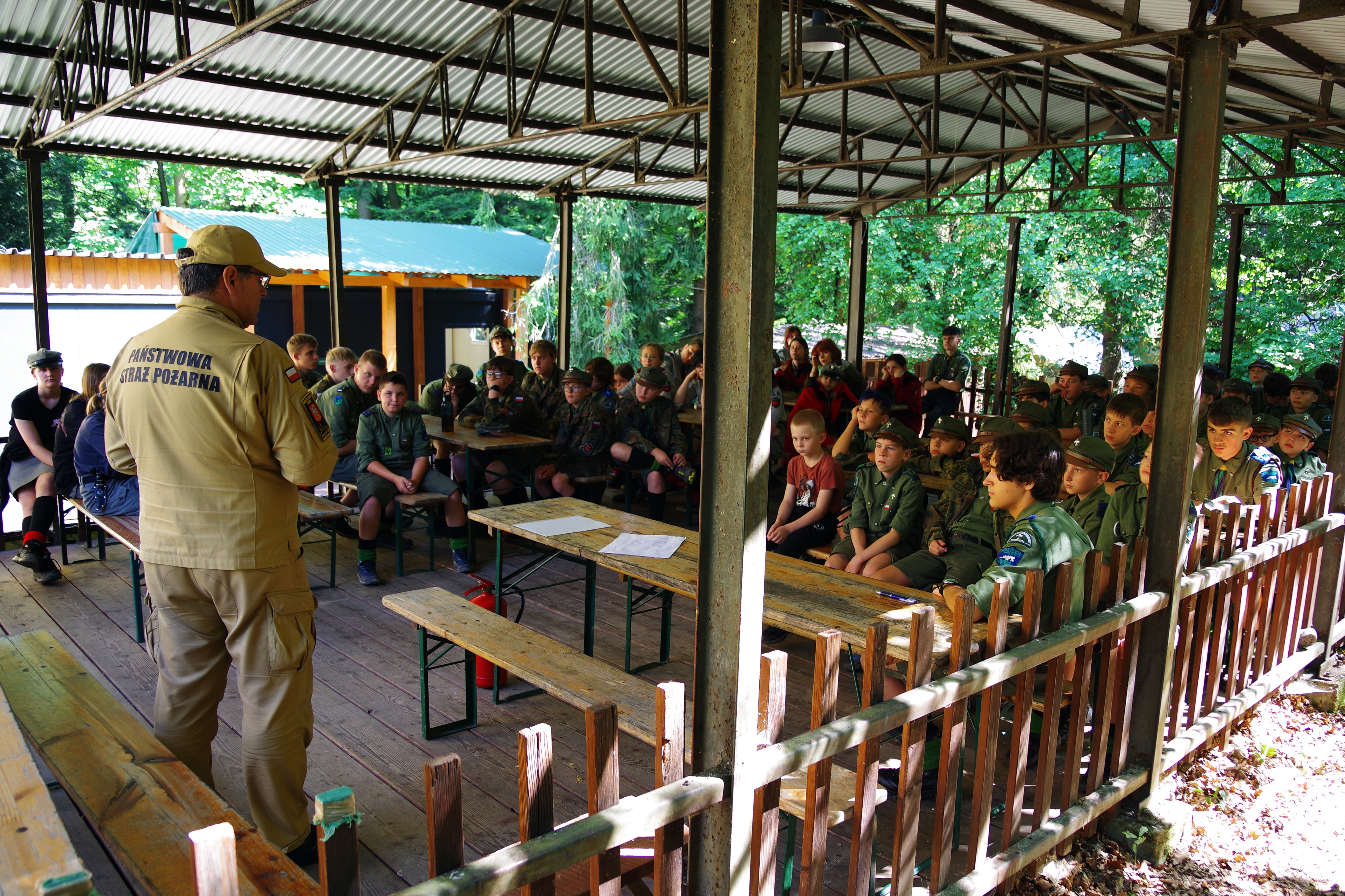 W pierwszych dniach kolejnych turnusów obozowych w Stryszowie–Zalesiu strażacy PSP sprawdzili m.in. sposoby wdrożenia zasad bezpieczeństwa, zweryfikowali warunki i organizację ewakuacji na terenie obozu, a także w ramach tzw. prewencji społecznej wygłosili prelekcję na temat bezpieczeństwa uczestników obozowej akcji letniej, zasad zachowania się na obszarach leśnych. Przedstawili także zasady używania podręcznego sprzętu gaśniczego oraz zapoznali harcerzy ze sposobami alarmowania i postępowania w razie zagrożeń. Dodatkowo funkcjonariusze PSP przeprowadzili szkolenie kadry instruktorskiej z zakresu łączności oraz alarmowania służb ratowniczych i porządkowych w przypadku wystąpienia zagrożenia.