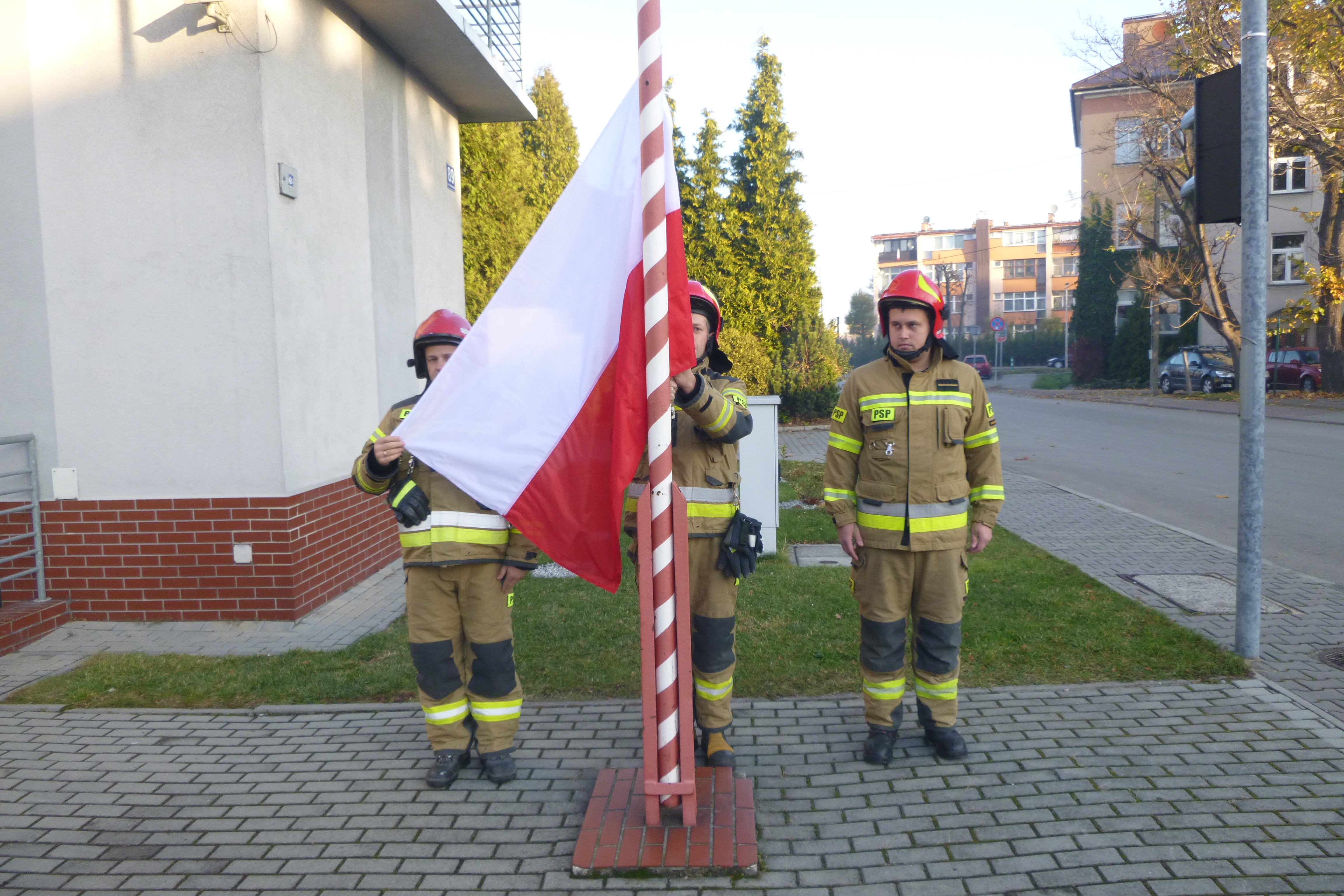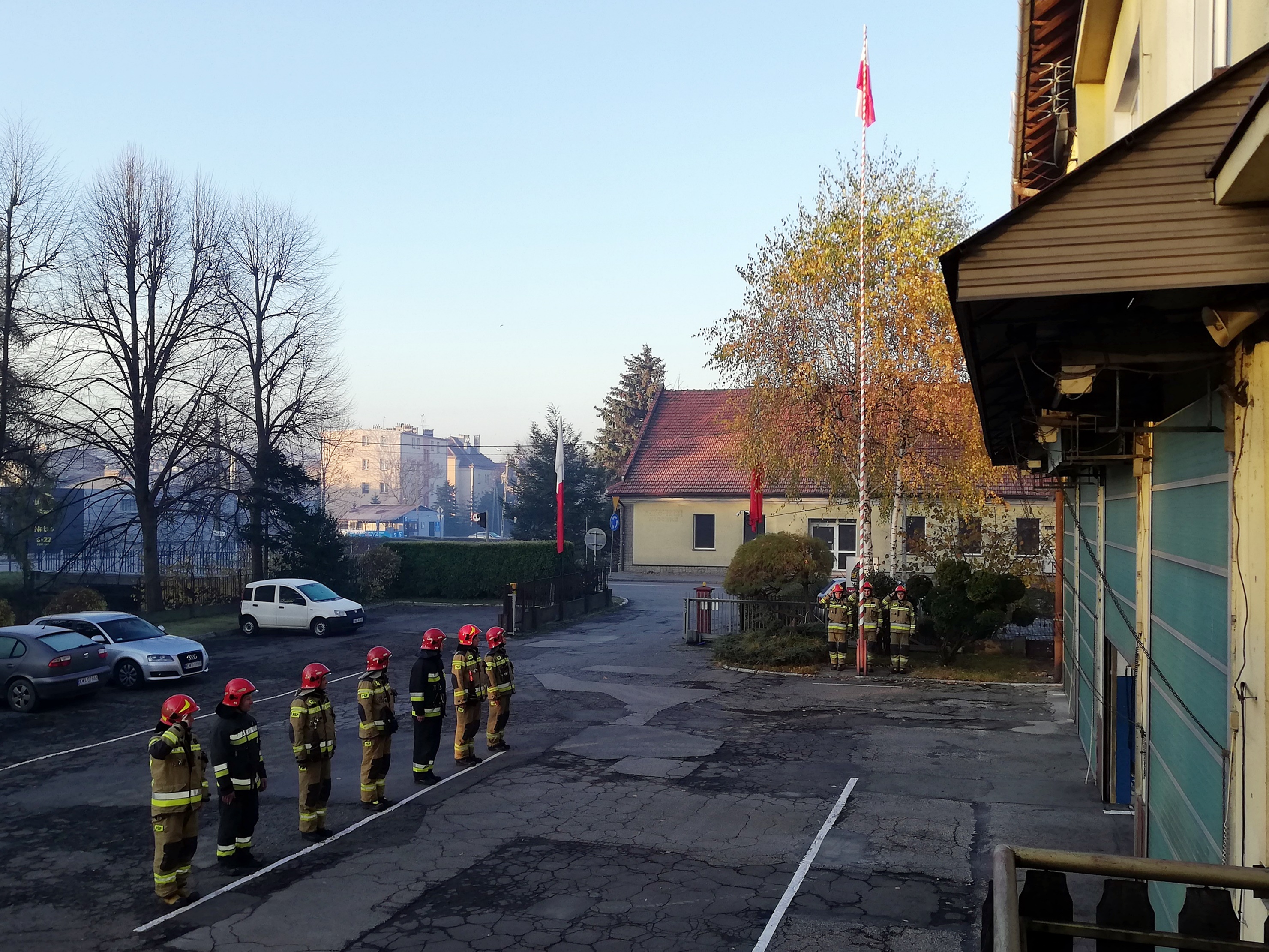 Z okazji Święta Niepodległości strażacy, pełniący służbę w jednostkach ratowniczo-gaśnicznych PSP, przeprowadzili uroczyste zmiany służby. W ich trakcie uroczyście podniesiono flagę państwową na maszt. W zmianie służby w JRG w Andrychowie brali też udział ratownicy medyczni pełniący służbę w tym samym budynku. Uroczystość miała bardzo skromy charakter ze względu na obowiązujące ograniczenia, związane z nasilającą się falą epidemii Covid.