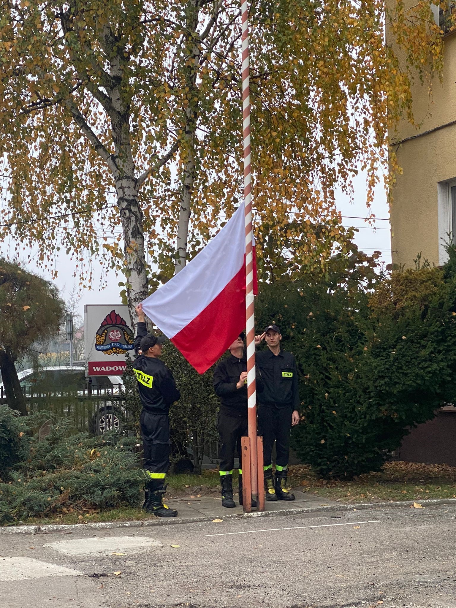 W dniu 11 listopada z okazji Święta Niepodległości strażacy, pełniący służbę w jednostkach ratowniczo-gaśniczych Komendy Powiatowej PSP w Wadowicach, przeprowadzili uroczyste zmiany służby, w trakcie których podniesiono flagę państwową na maszt.