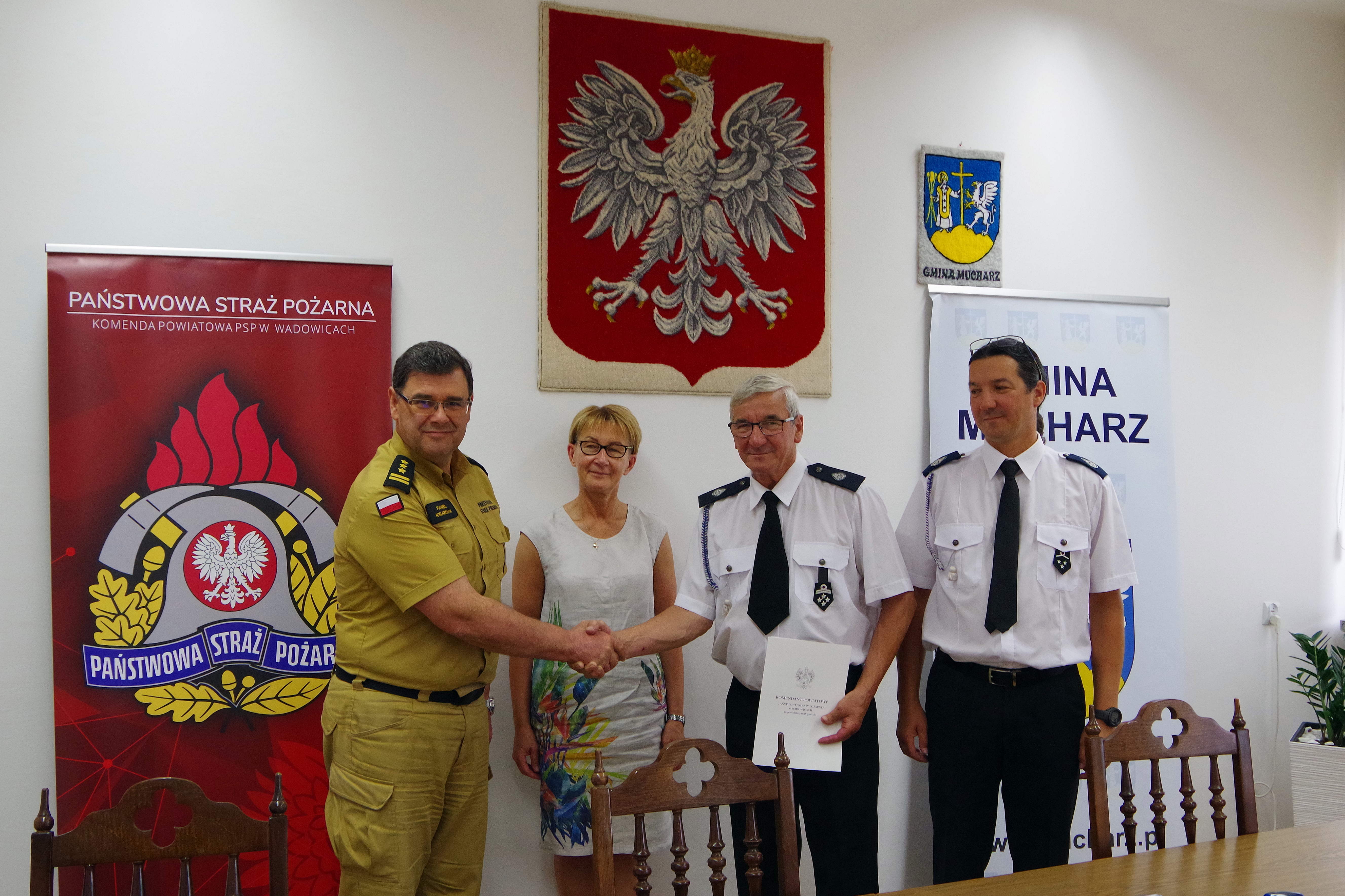 Podpisanie porozumienia w sprawie włączenia na kolejne lata do krajowego systemu ratowniczo-gaśniczego Ochotniczej Straży Pożarnej w Mucharzu.