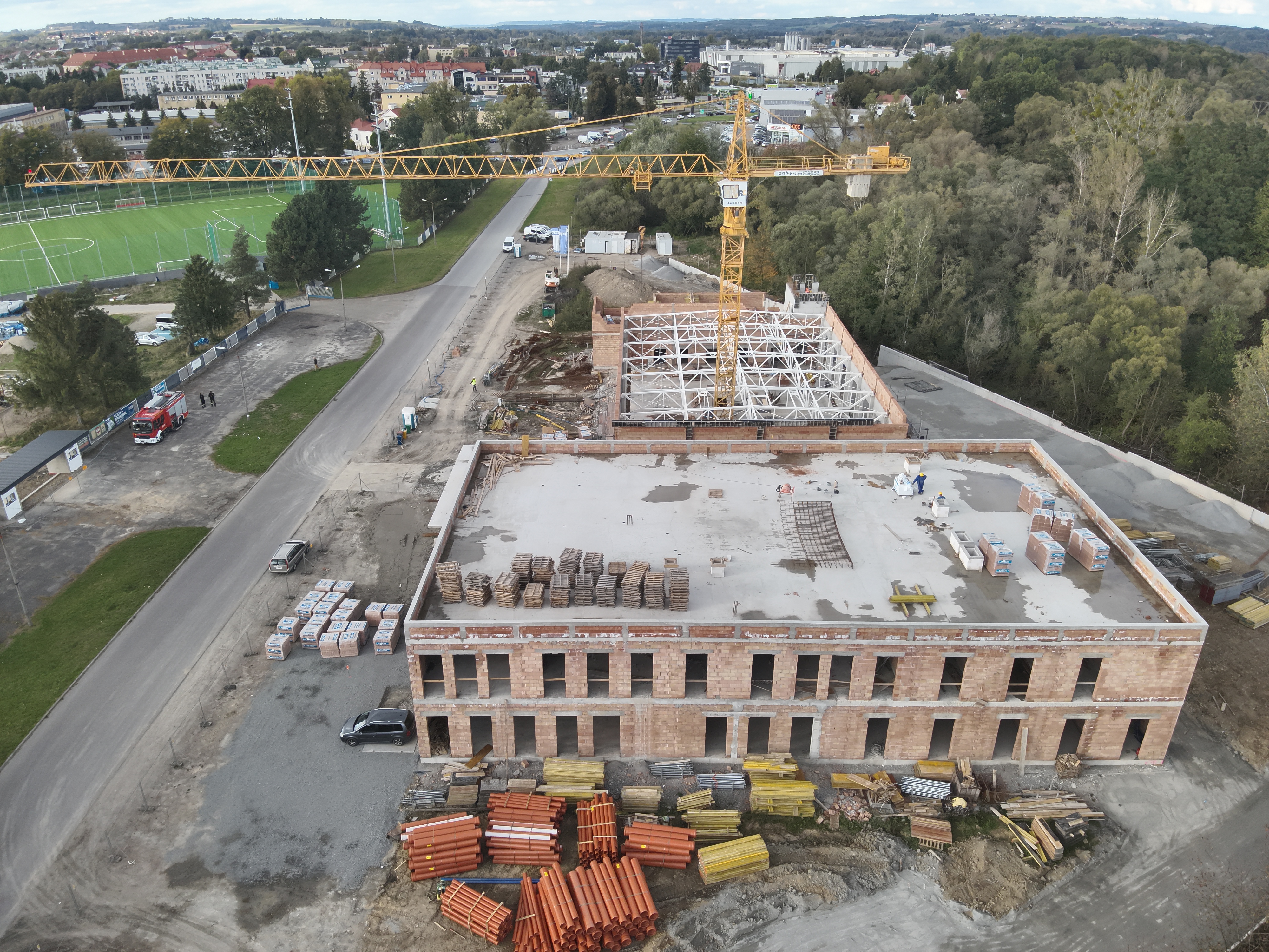 Na dzień dzisiejszy zakończono prace związane z wylewaniem stropu nad drugą kondygnacją w części koszarowo-technicznej. W tej części znajdą się pomieszczenia przeznaczone dla Jednostki Ratowniczo-Gaśniczej, a także przestrzenie administracyjne i socjalne.W trakcie spotkania omówiono również plany na kolejne etapy realizacji, co pozwala na sprawne kontynuowanie prac budowlanych zgodnie z harmonogramem.