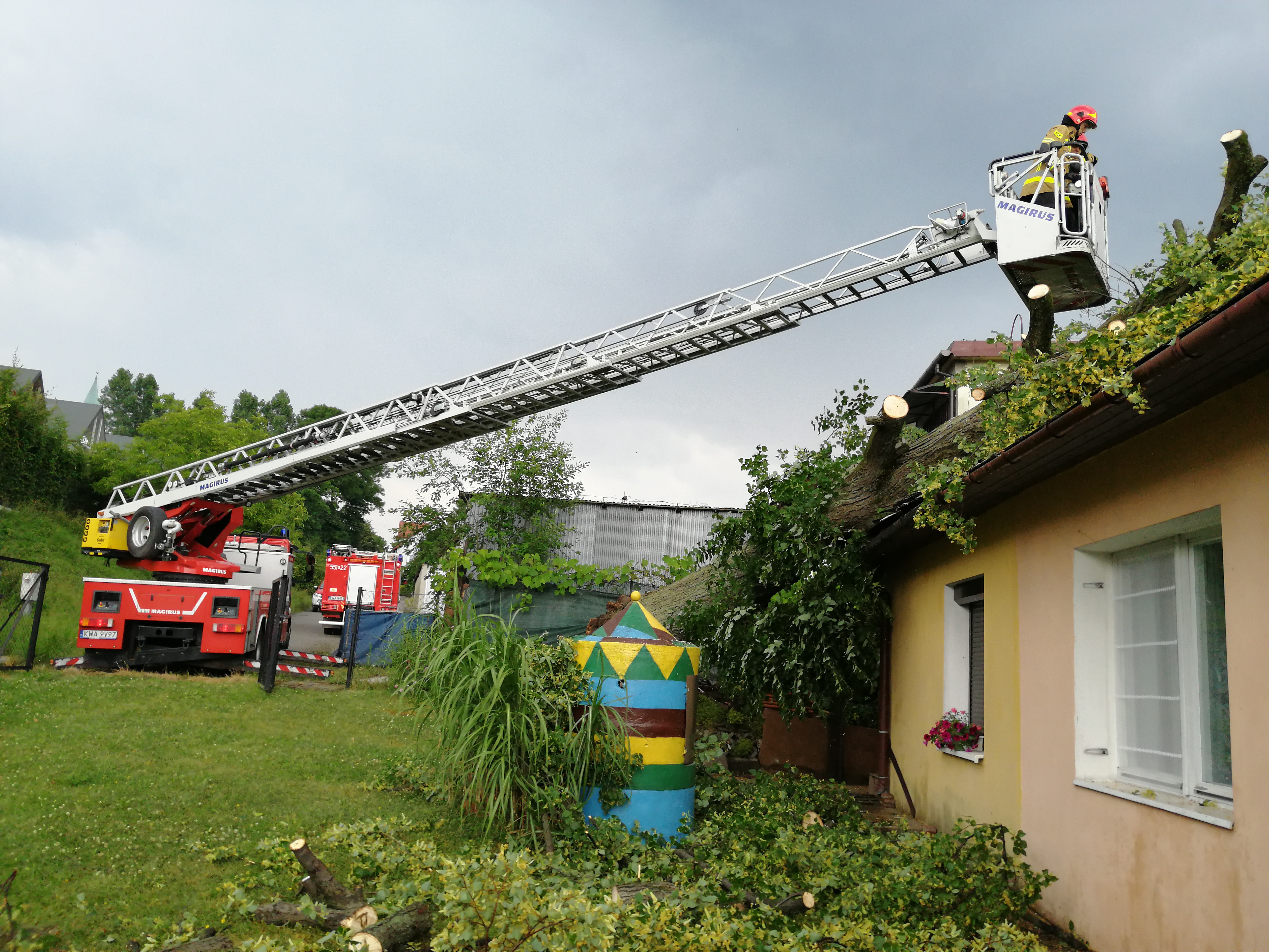 9.07.2021 r. na ulicy 3 Maja w Lanckoronie przewróciło się drzewo na budynek mieszkalny.
