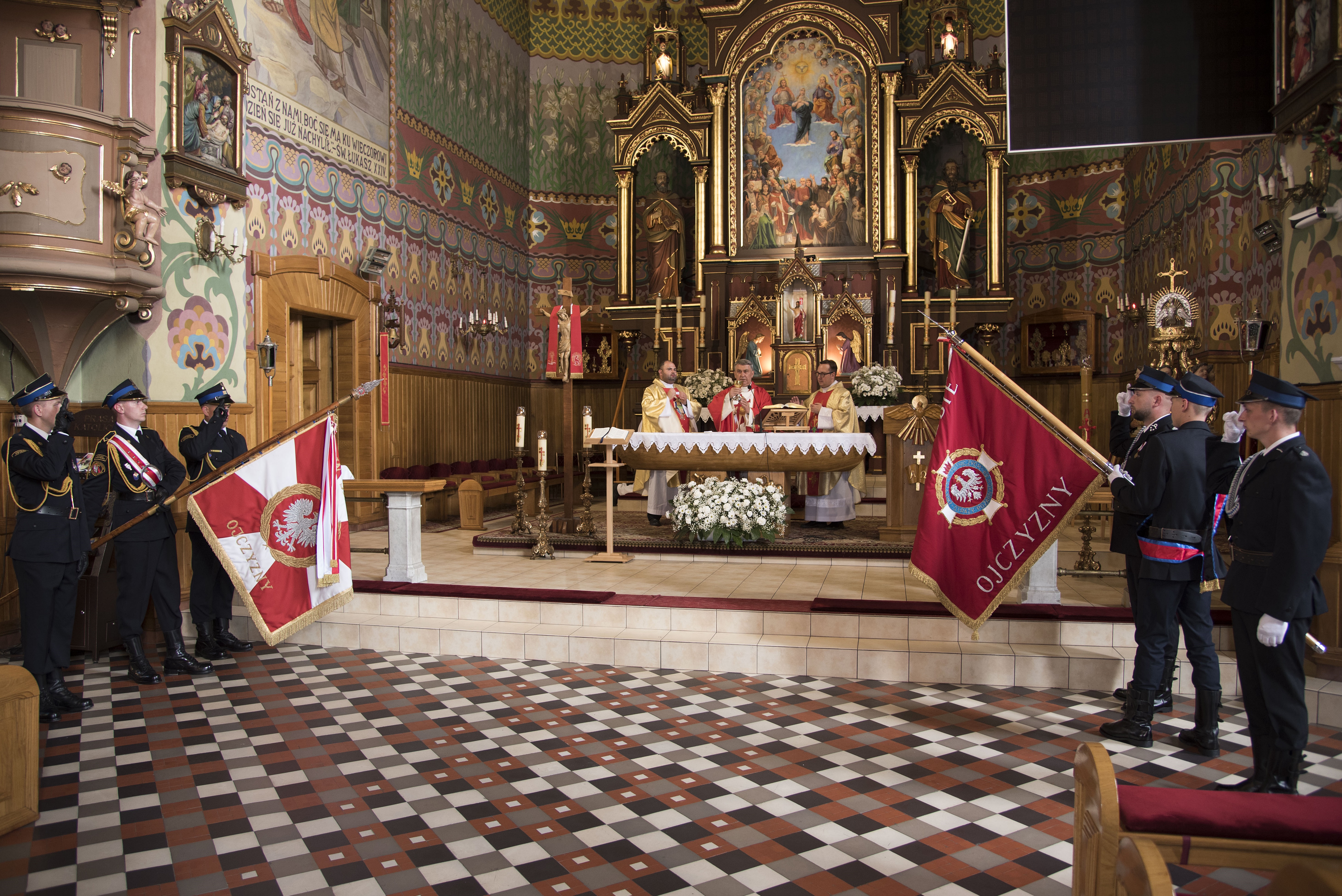 Poczet sztandarowy PSP w składzie: mł. kpt. Adrian Homel, mł. asp. Bartłomiej Bizoń i sekc. Dawid Schabowicz wystawiła JRG w Andrychowie, poczet sztandarowy Oddziału Powiatowego Związku OSP RP w Wadowicach tworzyli strażacy z OSP Stanisław Górny; druh Artur Kasiarz, druh Piotr Rychlik i druh Norbert Juszczak, a poczet flagowy w składzie mł. kpt. Przemysław Wróbel, asp. Marek Kania i st. ogn. Łukasz Tomiczek z JRG w Wadowicach.