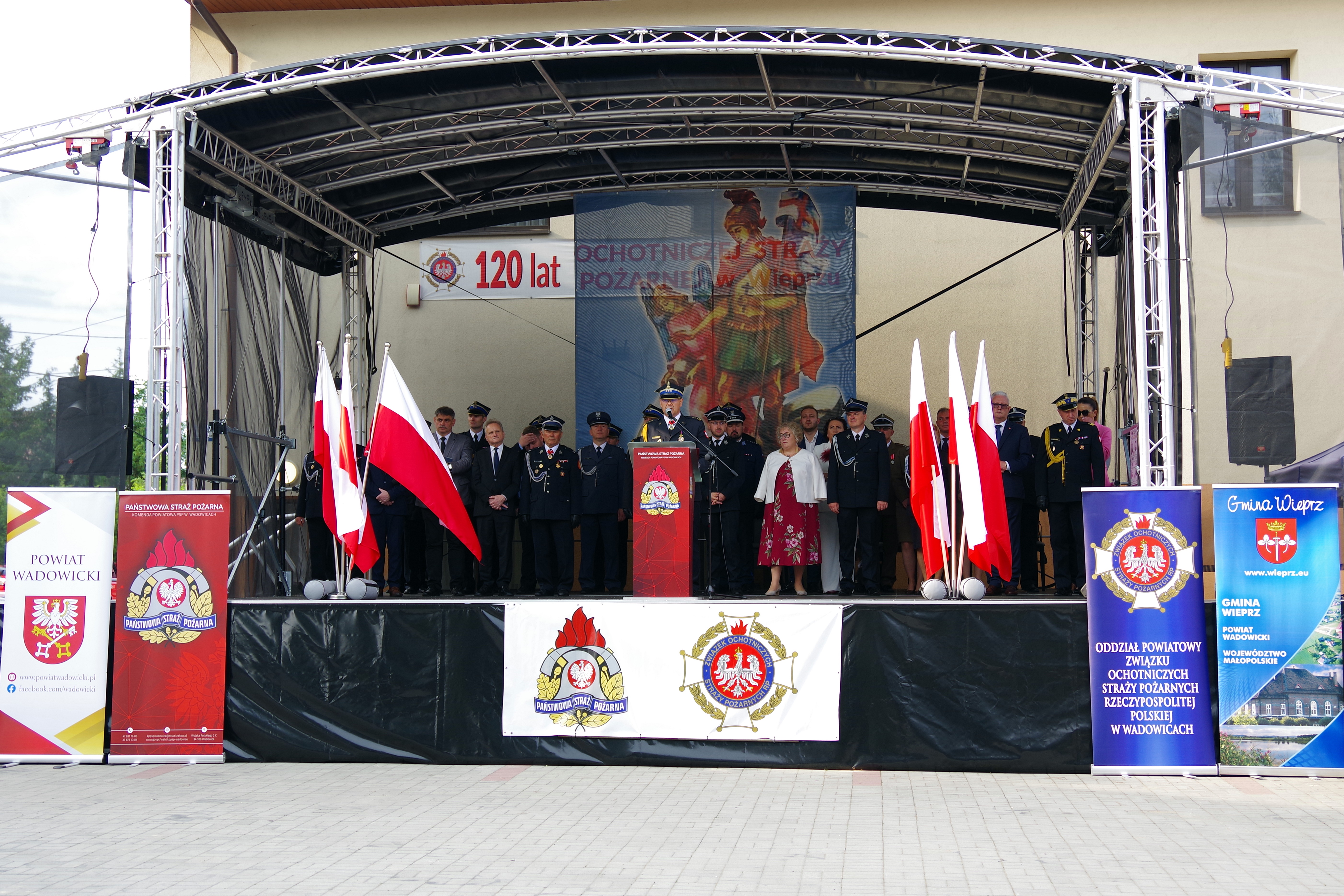 Po chwili nastąpiło złożenie meldunku zastępcy małopolskiego komendanta wojewódzkiego PSP bryg. Marcinowi Głogowskiemu przez dowódcę uroczystości oraz podniesienie flagi państwowej na maszt przy dźwiękach hymnu narodowego. Następnie komendant powiatowy PSP w Wadowicach st. bryg. Paweł Kwarciak przywitał przybyłych na strażacki apel gości, funkcjonariuszy PSP, strażaków OSP oraz sympatyków pożarnictwa.