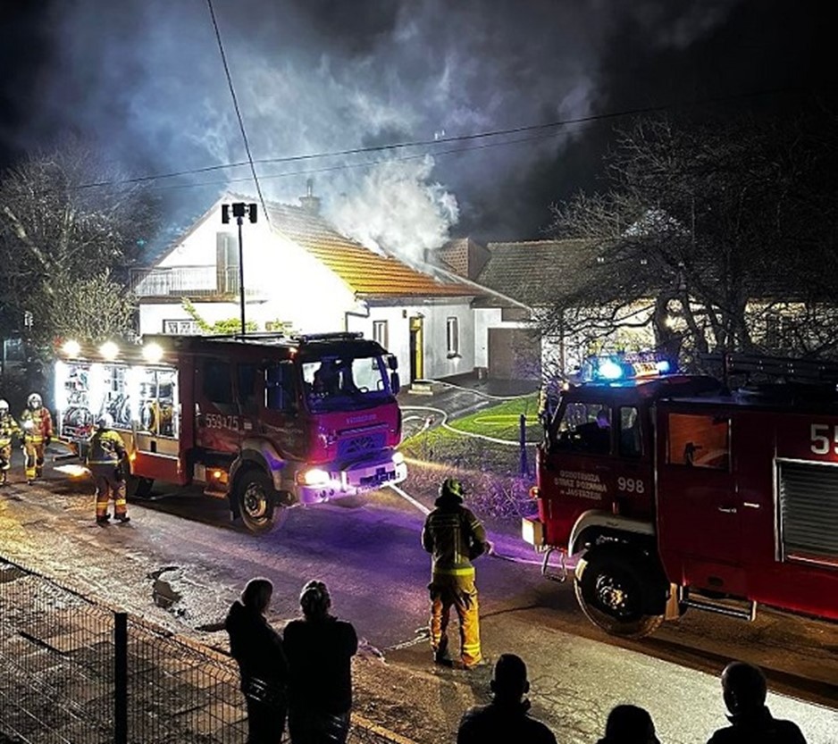 Dnia 02.04.2026 roku o godz. 23:32 do Stanowiska Kierowania Komendanta Powiatowego Państwowej Straży Pożarnej w Wadowicach wpłynęło zgłoszenie o pożarze budynku mieszkalnego w miejscowości Lanckorona. Osobą zgłaszającą był sąsiad, który wyjrzawszy przez okno spostrzegł płomienie na dachu swojego sąsiada. Do zdarzenia zadysponowano 7 zastępów Ochotniczych Straży Pożarnych z terenu gminy Lanckorona oraz 3 zastępy z Jednostki Ratowniczo-Gaśniczej w Wadowicach. Pierwszy przybyły na miejsce zdarzenia dowódca stwierdził rozwinięty pożar poddasza. Uzyskał również informację, iż w budynku nie ma osób zagrożonych. Pożar ugaszono przy pomocy 4 prądów gaśniczych wody. W trwającej ponad 3 godziny akcji wzięło udział 10 zastępów i 45 strażaków PSP i OSP.