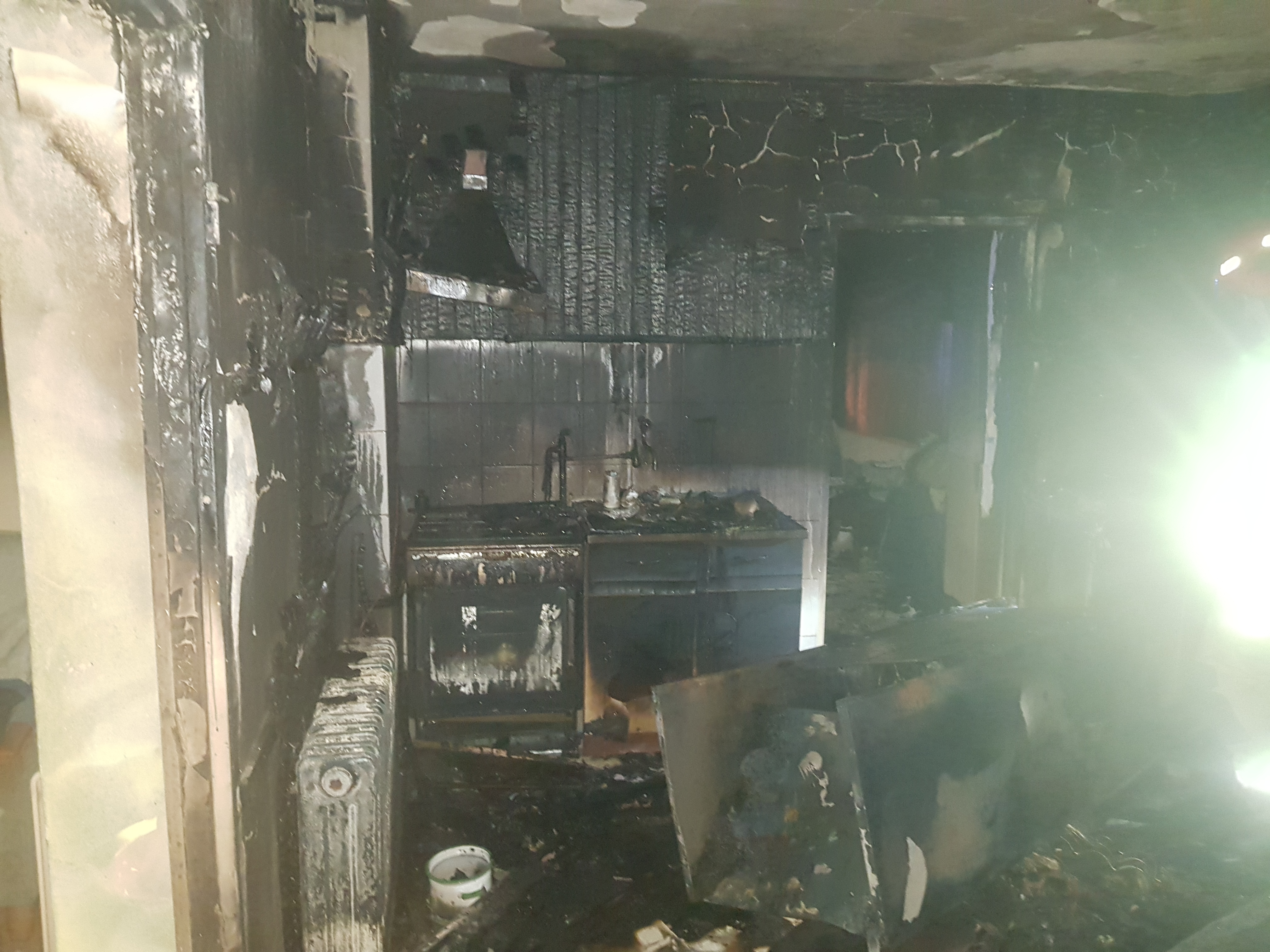 Strażacy, działając wewnątrz płonącego budynku, odnaleźli poszkodowaną i ewakuowali ją na zewnątrz. Poszkodowana doznała licznych obrażeń. Strażacy udzielili jej pomocy medycznej do czasu przybycia zespołu ratownictwa medycznego.
