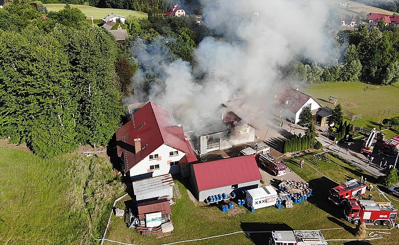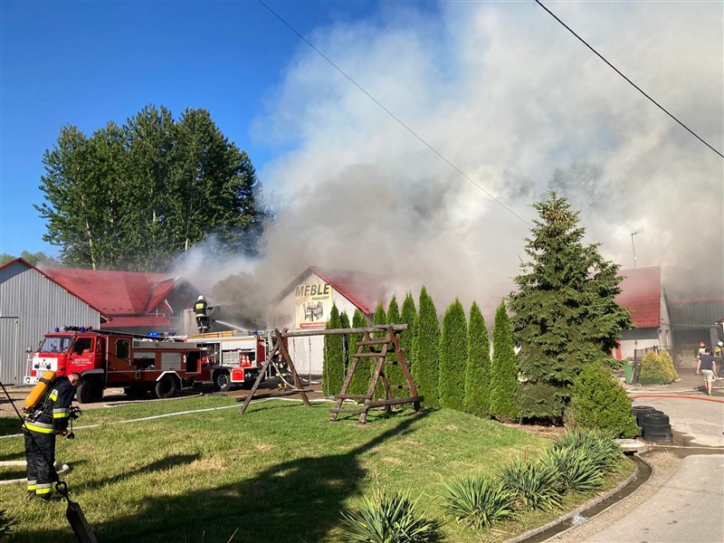 Pożar zakładu stolarskiego w Łękawicy
