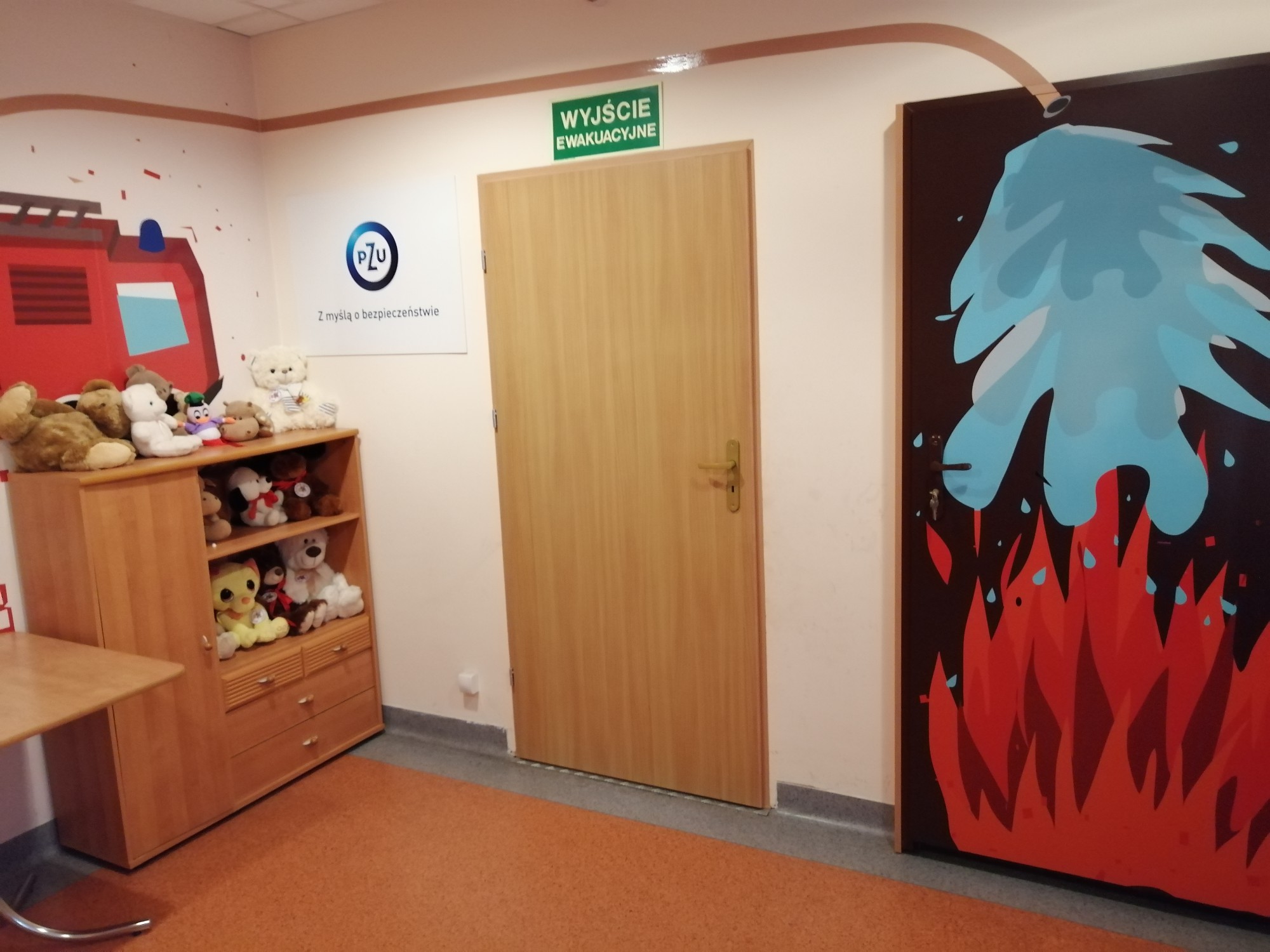 Sala przeznaczona jest do prowadzenia zajęć edukacyjnych z zakresu bezpieczeństwa pożarowego dla uczniów szkół podstawowych.
