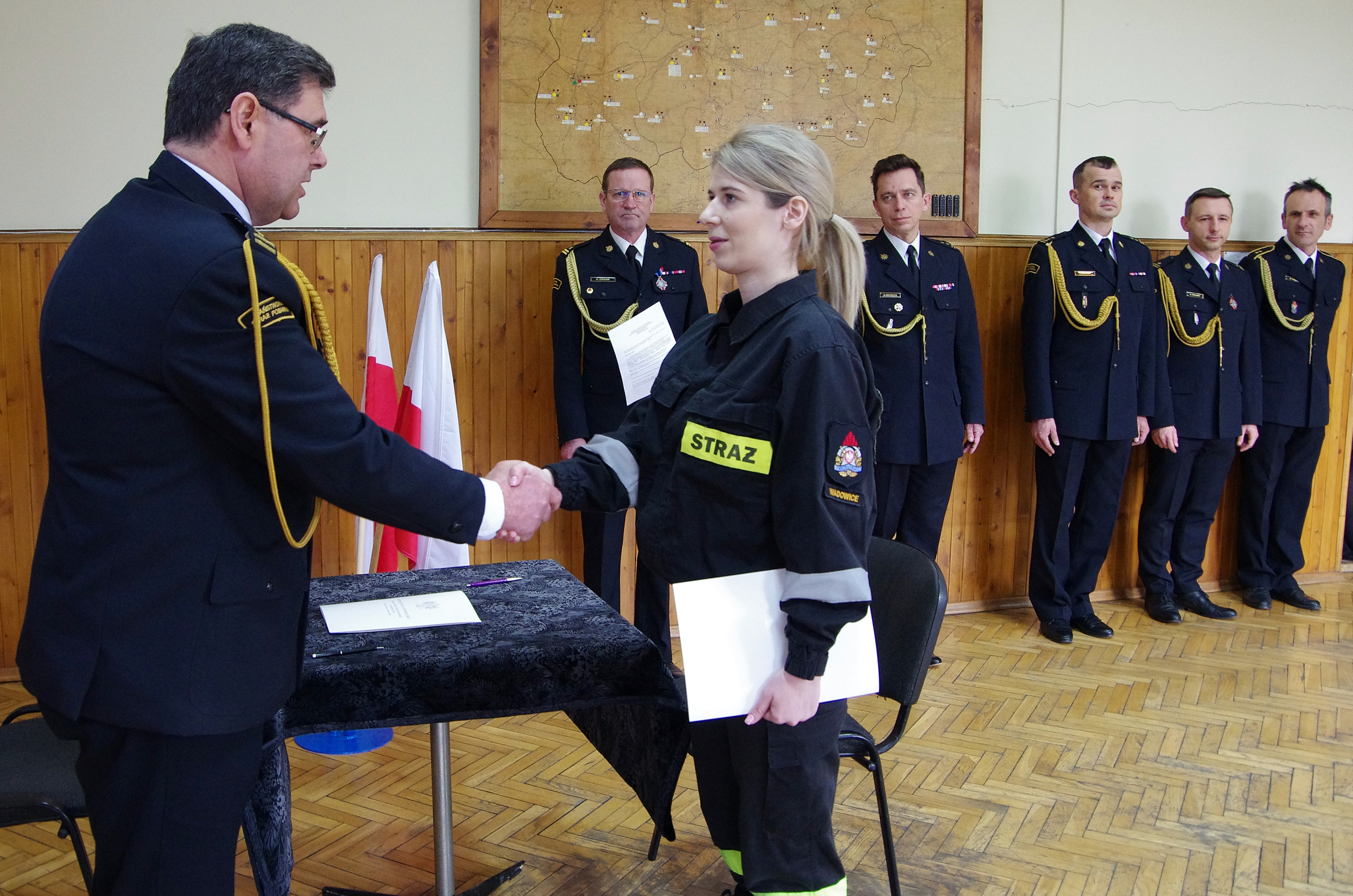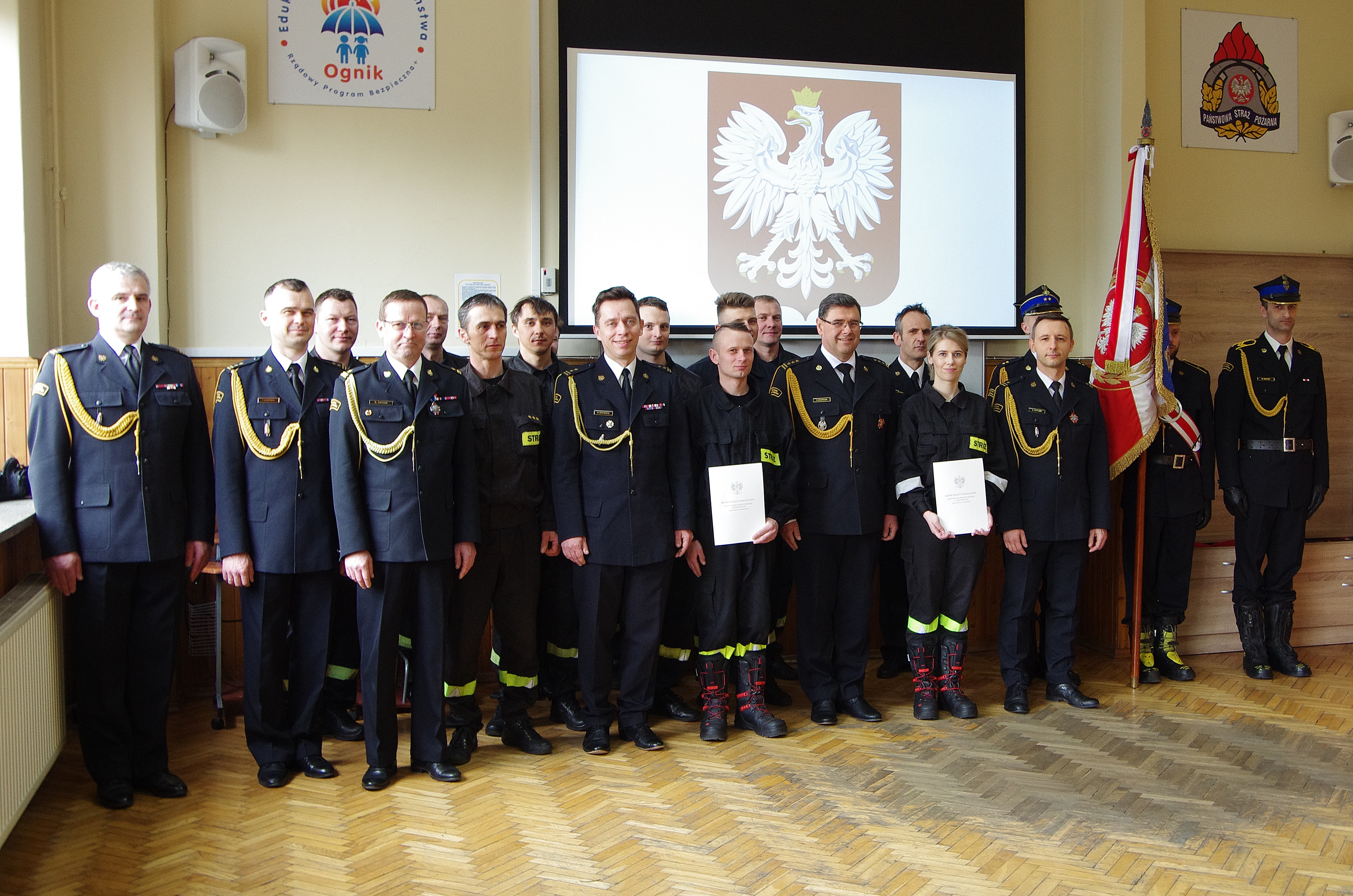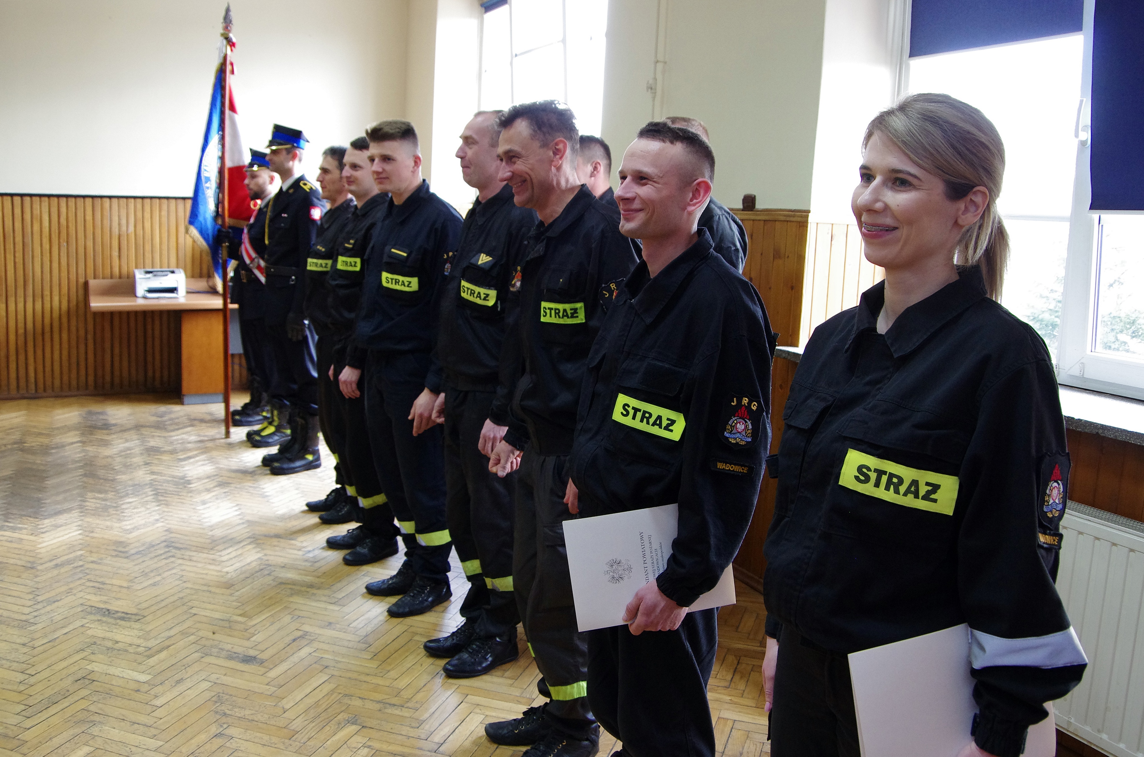 Słowa strażackiego ślubowania od str. Anny Janeczko i str. Jakuba Opyrchała, którzy z przejęciem wypowiadali słowa "...być ofiarnym i mężnym w ratowaniu zagrożonego życia ludzkiego i wszelkiego mienia - nawet z narażeniem życia..." przyjął Komendant Powiatowy PSP w Wadowicach st. bryg. Paweł Kwarciak w asyście swojego zastępcy bryg. Wojciecha Grzybczyka. W ceremonii, która odbywała się w obecności sztandaru wadowickiej Jednostki Ratowniczo-Gaśniczej, uczestniczyło też liczne grono funkcjonariuszy KP PSP w Wadowicach i JRG w Wadowicach.