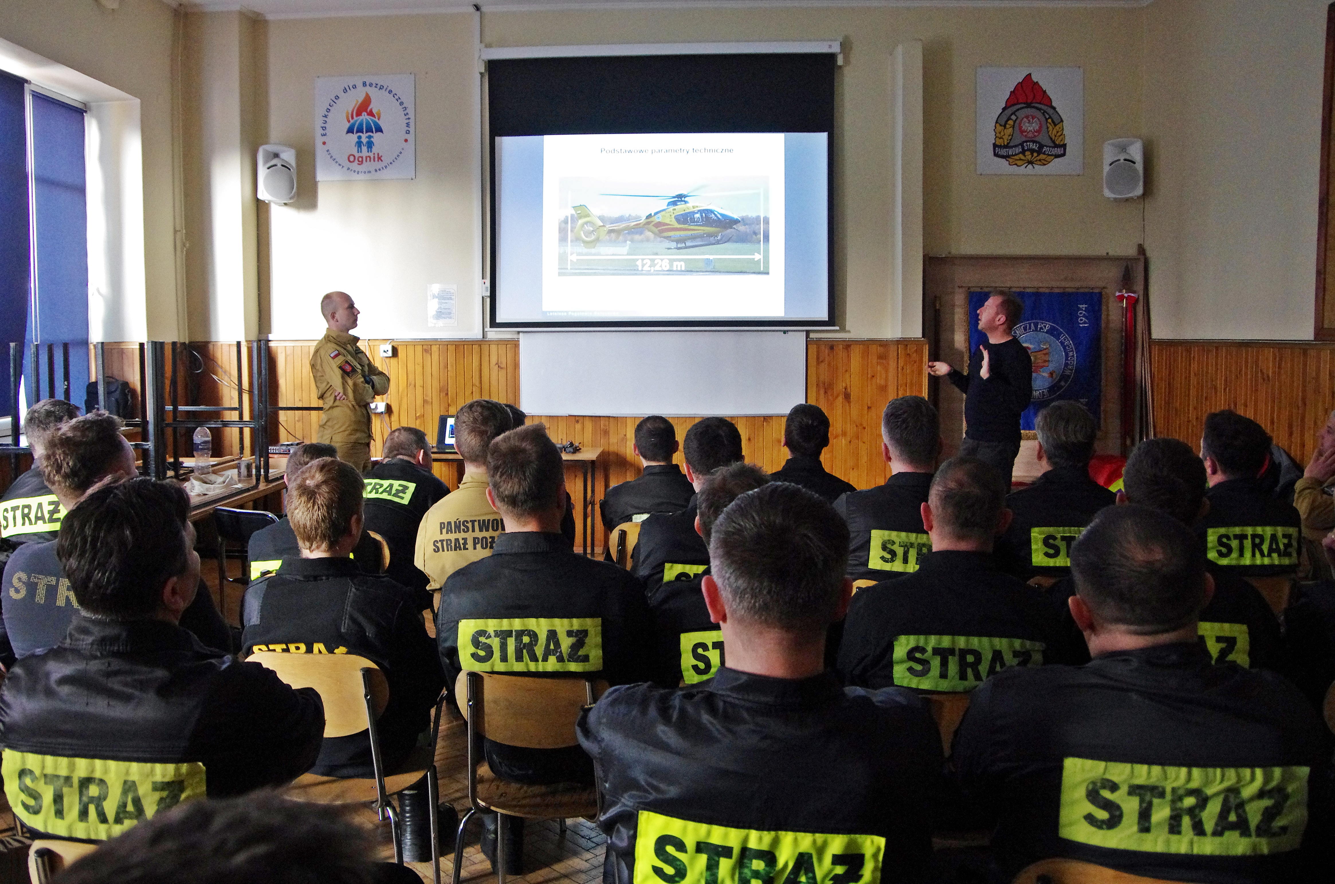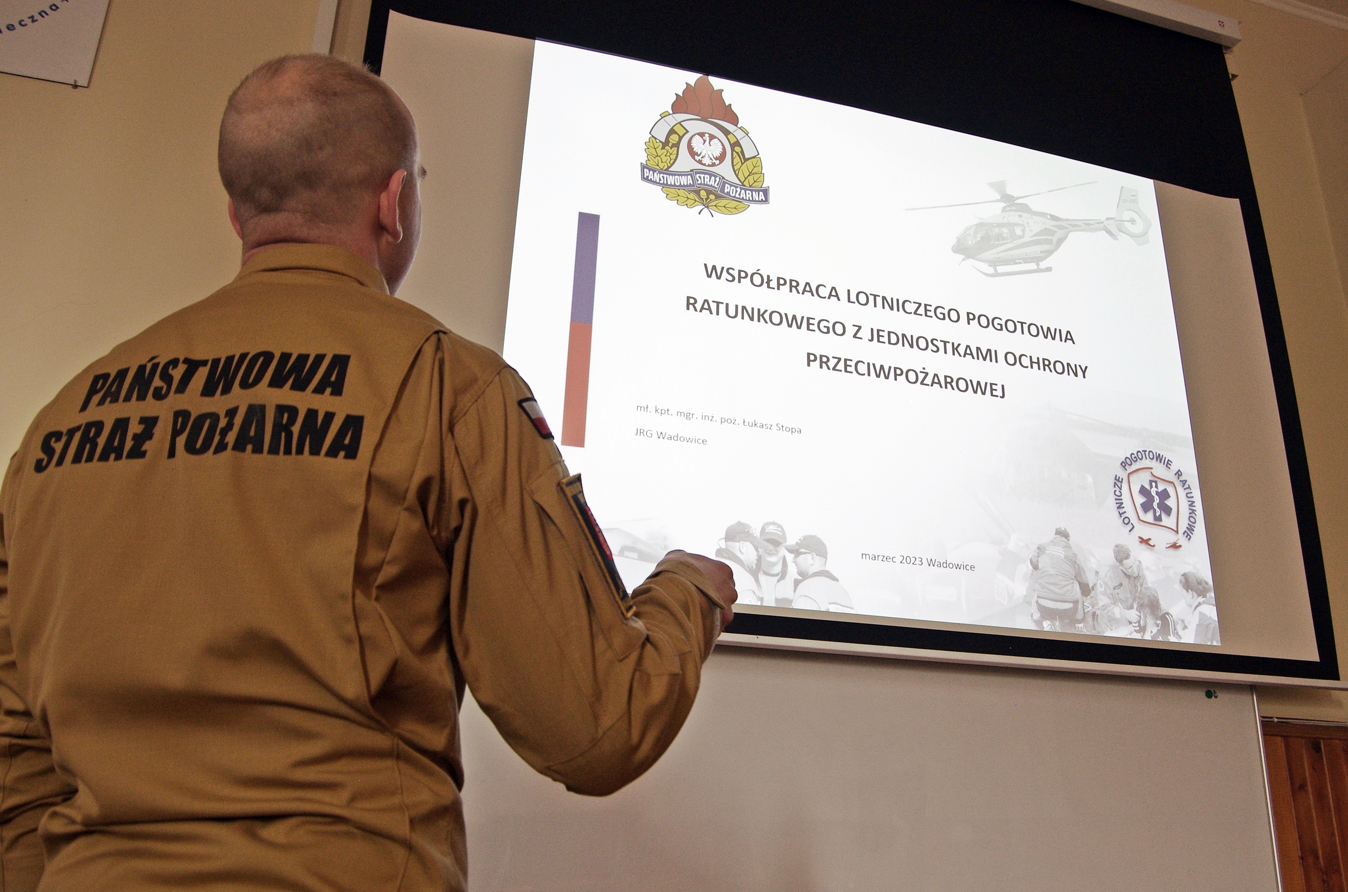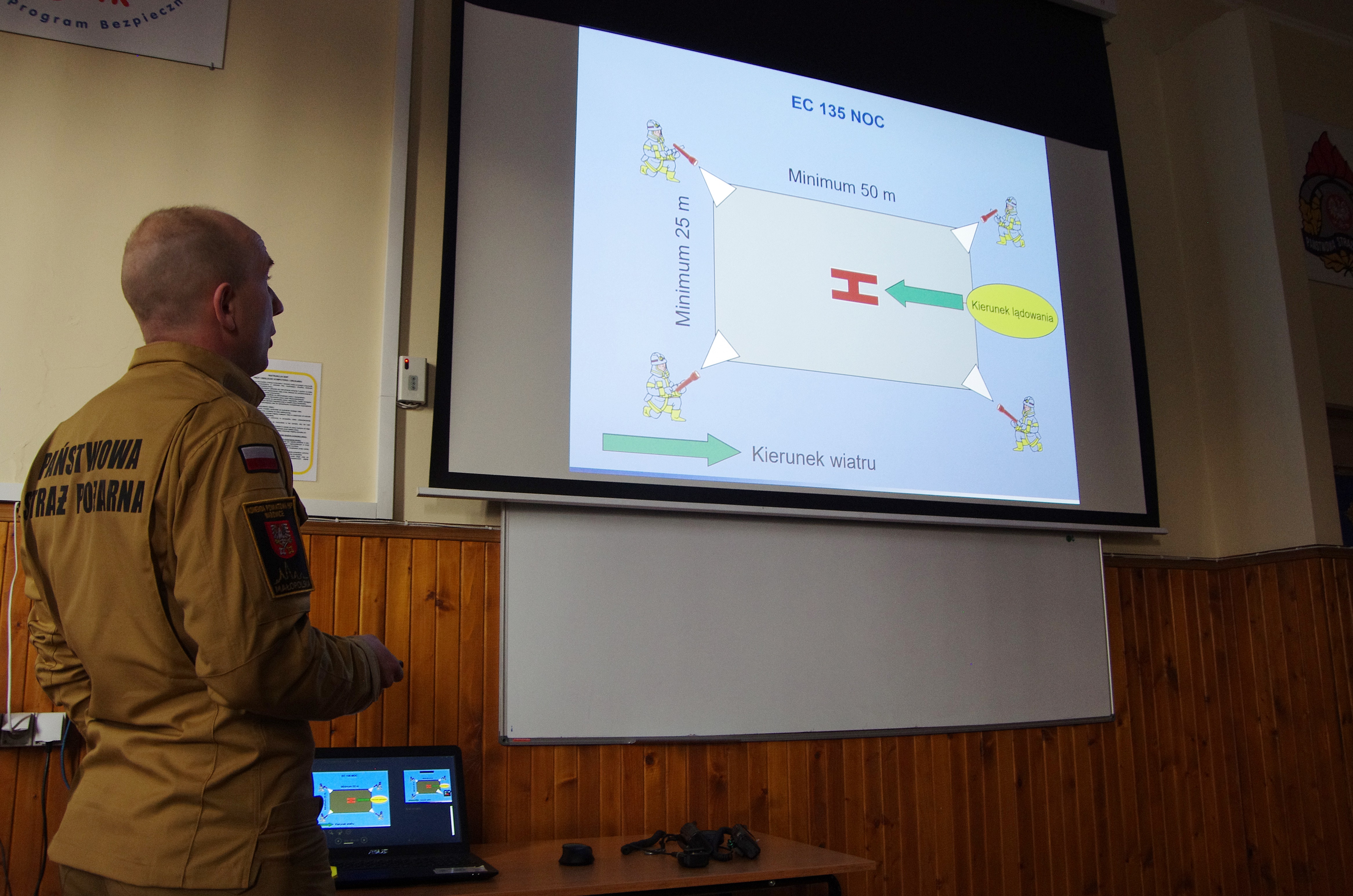Zajęcia szkoleniowe prowadził instruktor PSP z zakresu współdziałania z LPR mł. kpt. Łukasz Stopa z Jednostki Ratowniczo-Gaśniczej w Wadowicach oraz jeden z pilotów-instruktorów LPR.