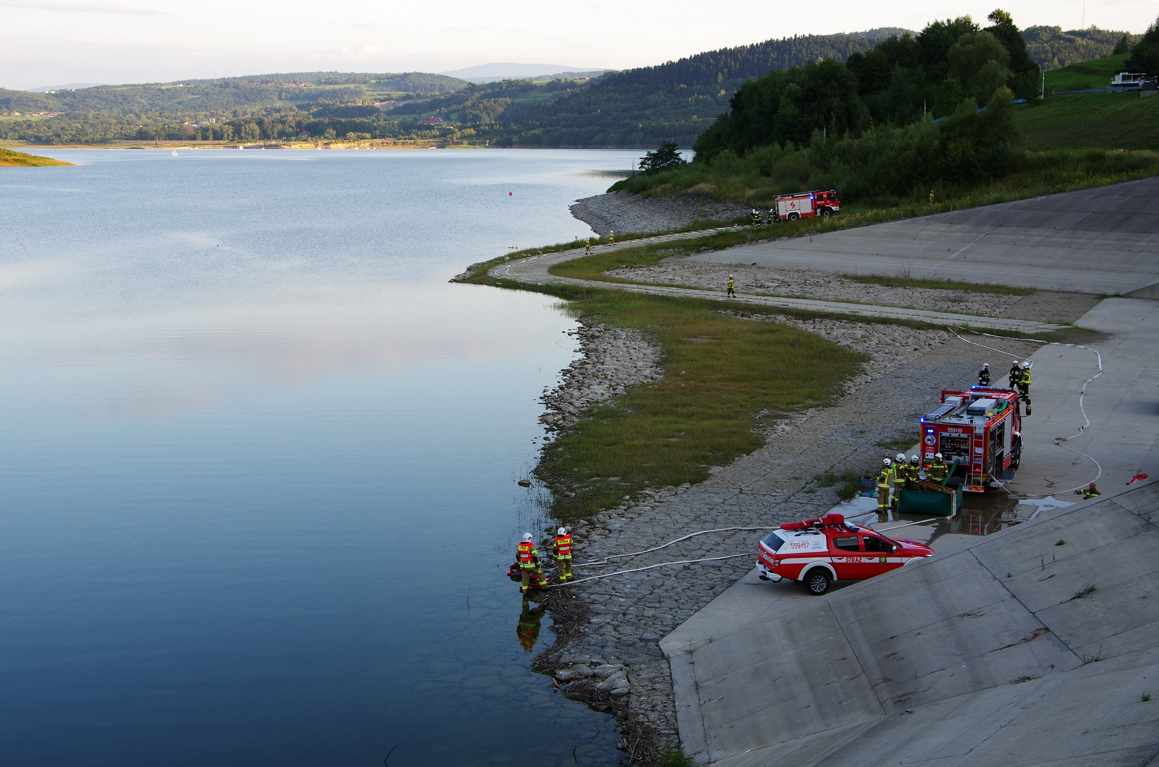 W dniu 30.08.2022 roku w Świnnej Porębie nad Jeziorem Mucharskim przeprowadzono pierwszą z kilku zaplanowanych prób praktycznych (ćwiczeń) wstępnie skonfigurowanego wadowickiego plutonu zaopatrzenia wodnego złożonego z sił i środków ochotniczych straży pożarnych.