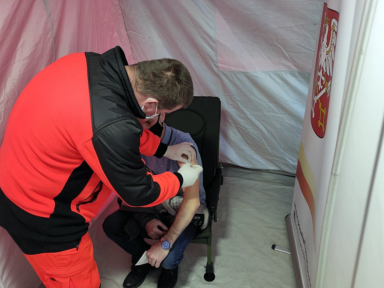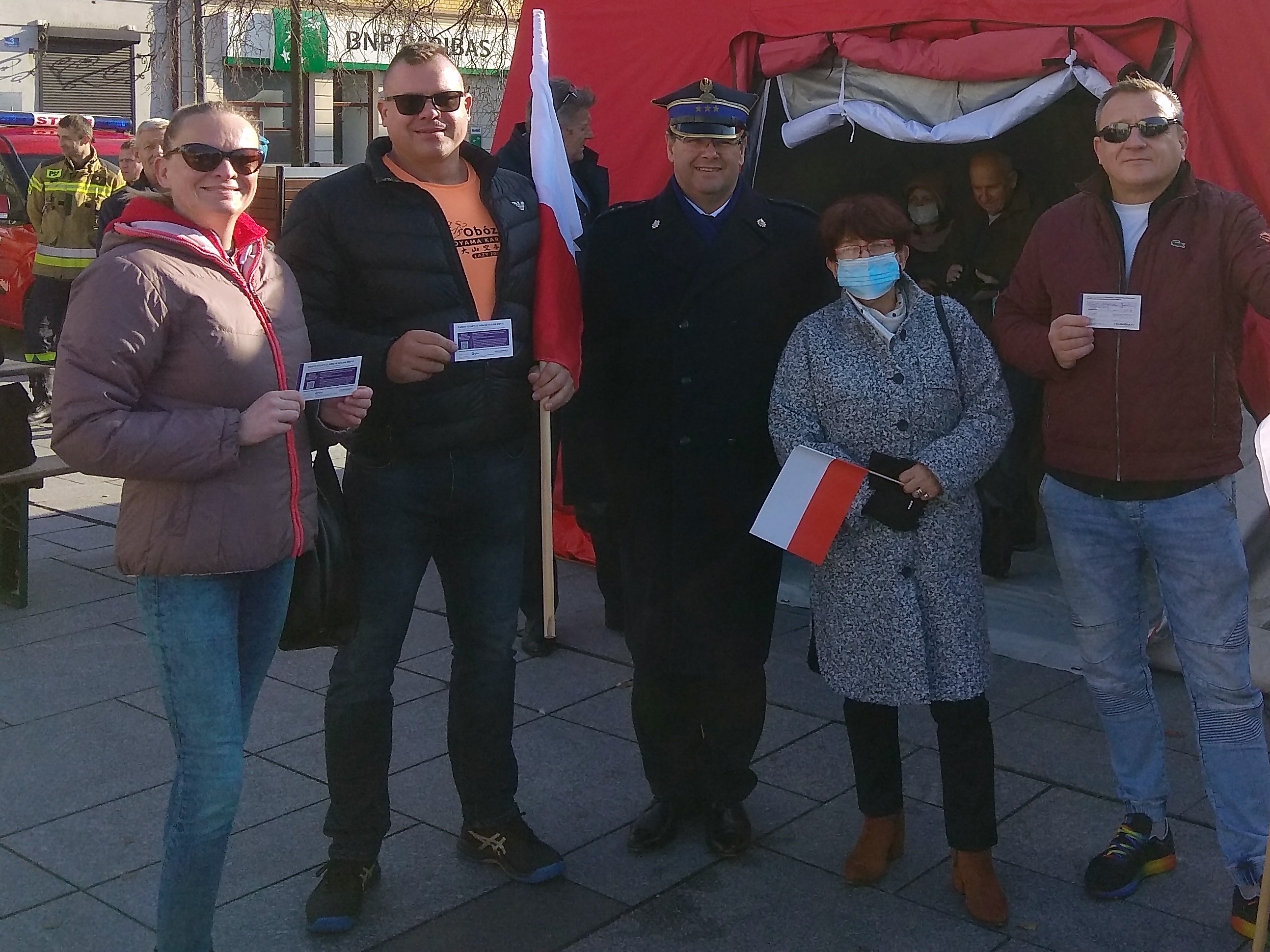 Strażacy zapewnili organizatorom specjalny namiot, który jako mobilny punkt szczepień został rozłożony na Placu Jana Pawła II. Osoby, które przyjęły szczepionkę przeciw chorobie Covid-19 otrzymywały od organizatorów akcji biało-czerwoną flagę państwową.