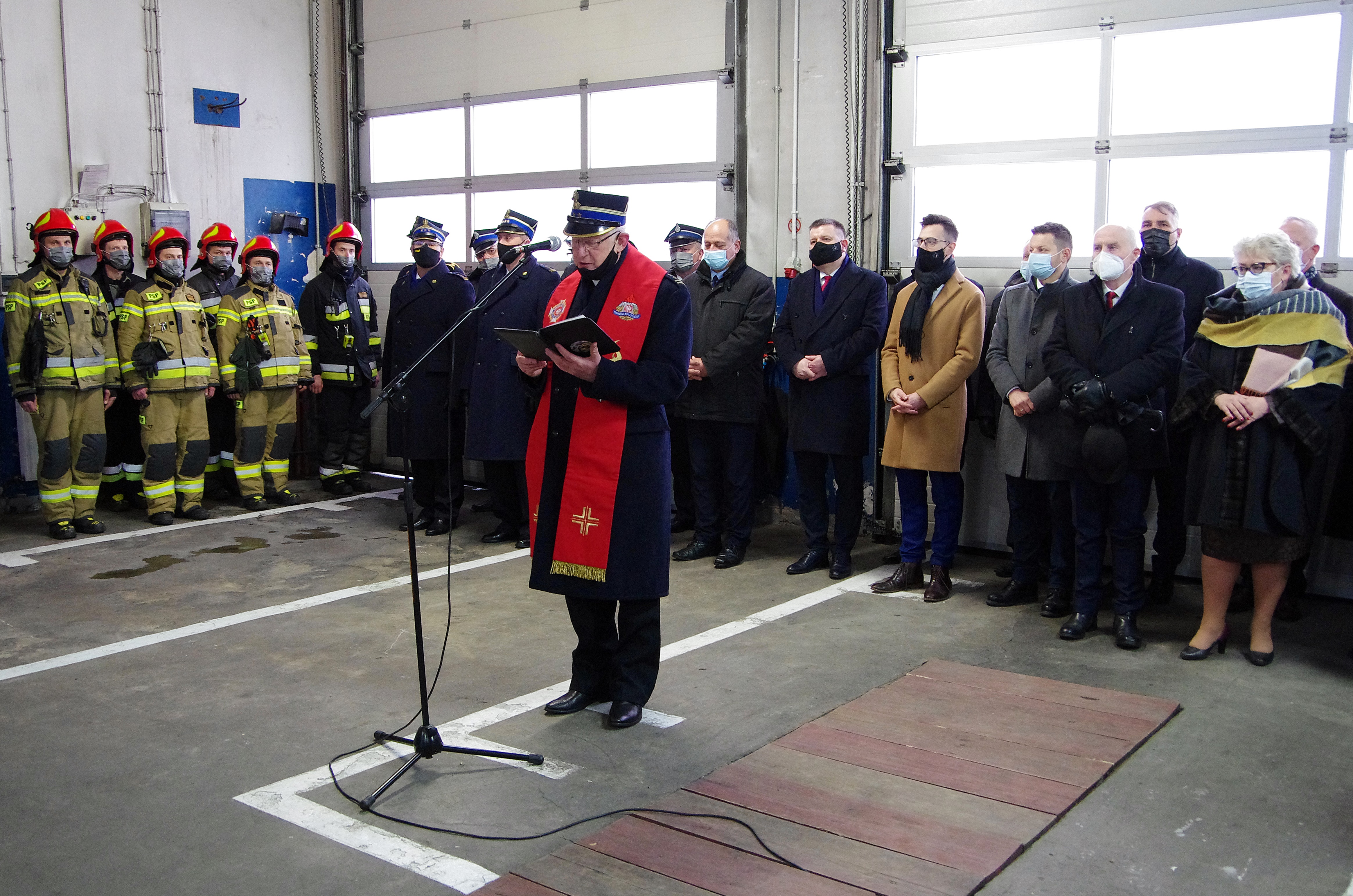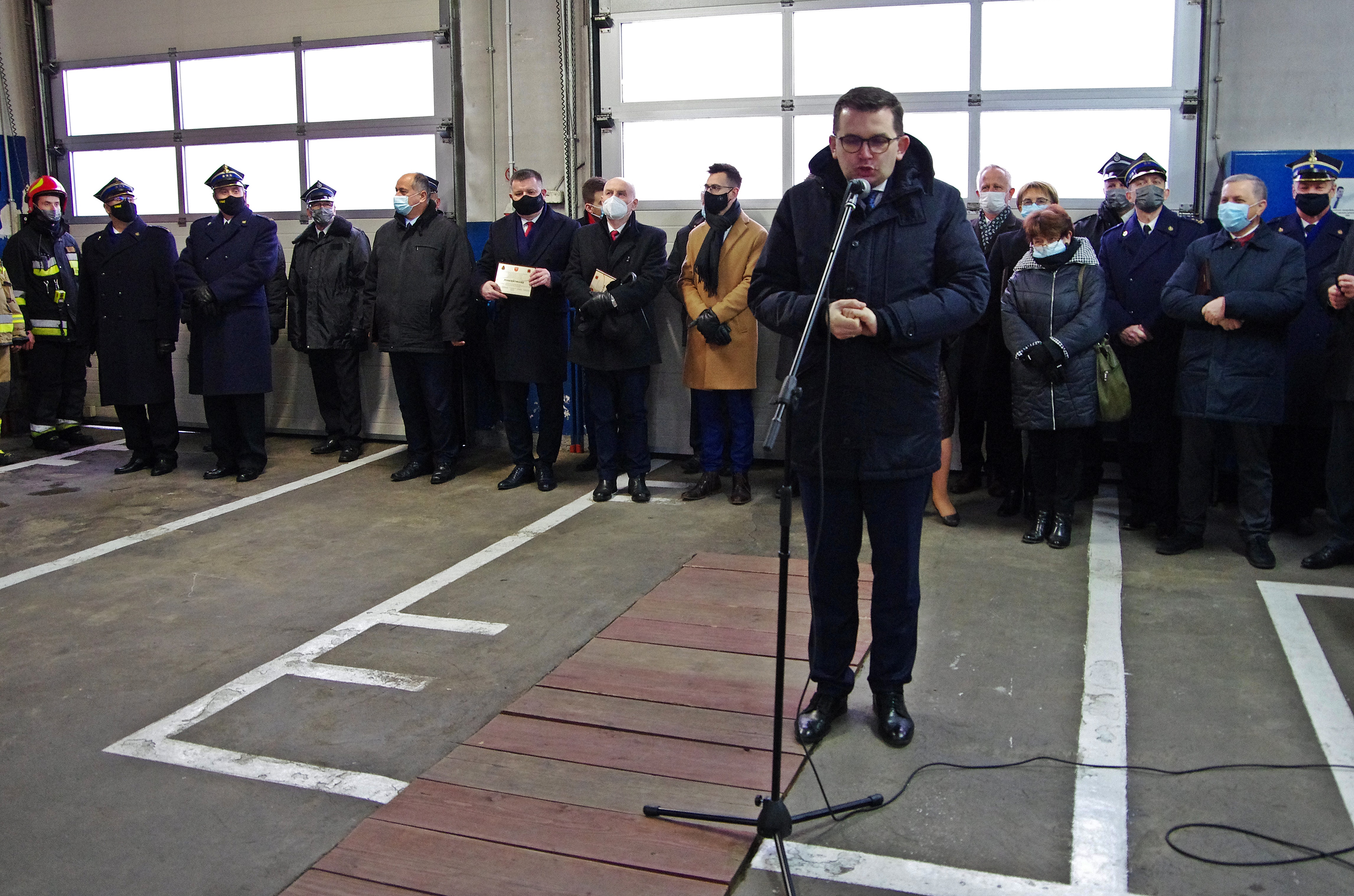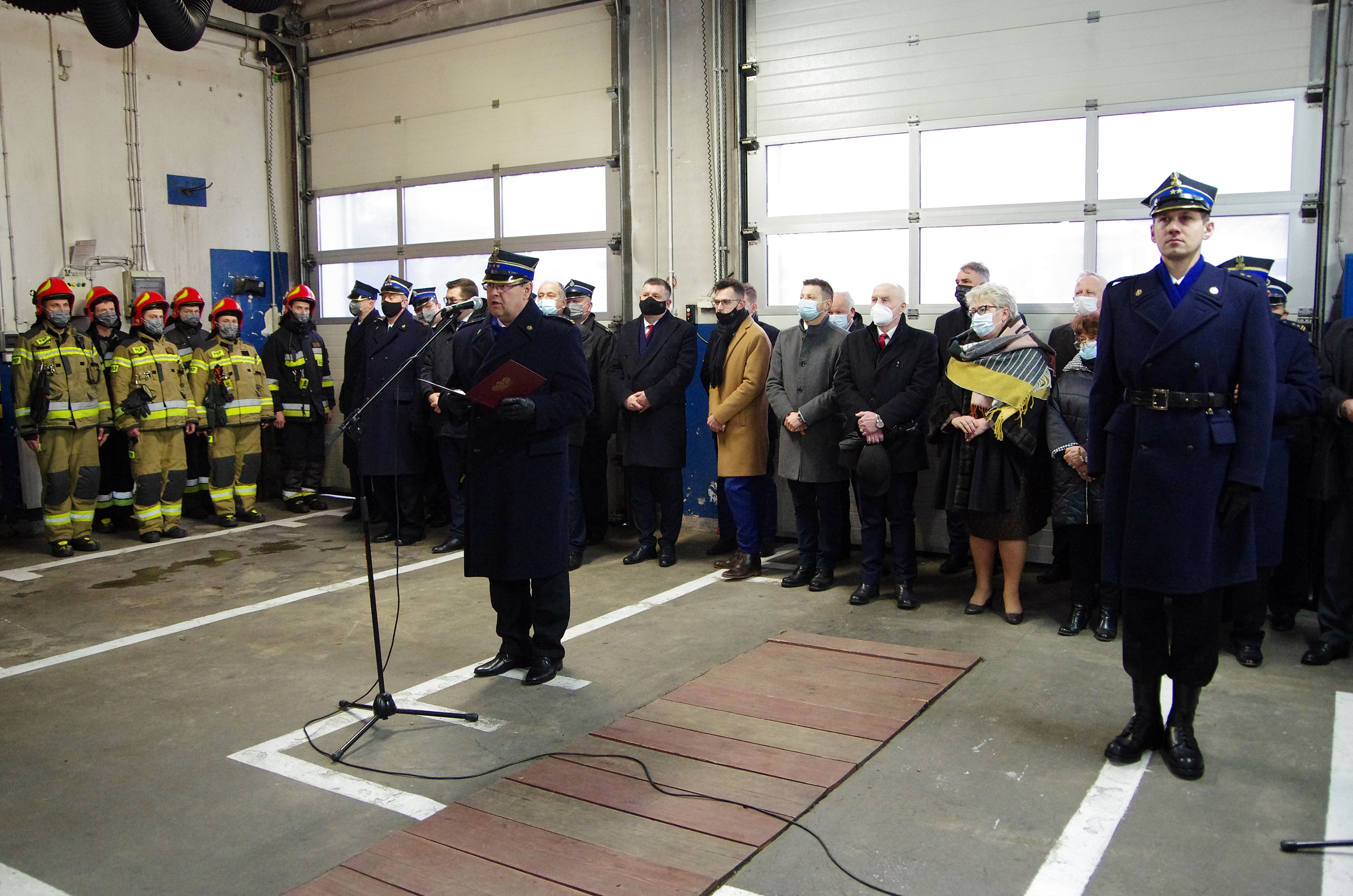 W ceremonii, oprócz strażaków PSP i członków OSP, udział wzięli goście, wśród których byli m.in. posłowie na Sejm RP: Filip Kaczyński, Marek Polak, Krzysztof Kozik, senator RP Andrzej Pająk, wojewoda małopolski Łukasz Kmita, małopolski komendant wojewódzki PSP st. bryg. Piotr Filipek, prezes Zarządu Wojewódzkiego Funduszu Ochrony Środowiska i Gospodarki Wodnej w Krakowie Kazimierz Koprowski, kapelan małopolskich strażaków ks. bryg. Władysław Kulig, członek Zarządu Oddziału Wojewódzkiego Związku OSP RP w Krakowie druh Antoni Kwarciak a także starosta wadowicki Eugeniusz Kurdas oraz przedstawiciele władz samorządowych szczebla powiatowego i gminnego z Wadowic, Andrychowa, Kalwarii Zebrzydowskiej oraz Mucharza.