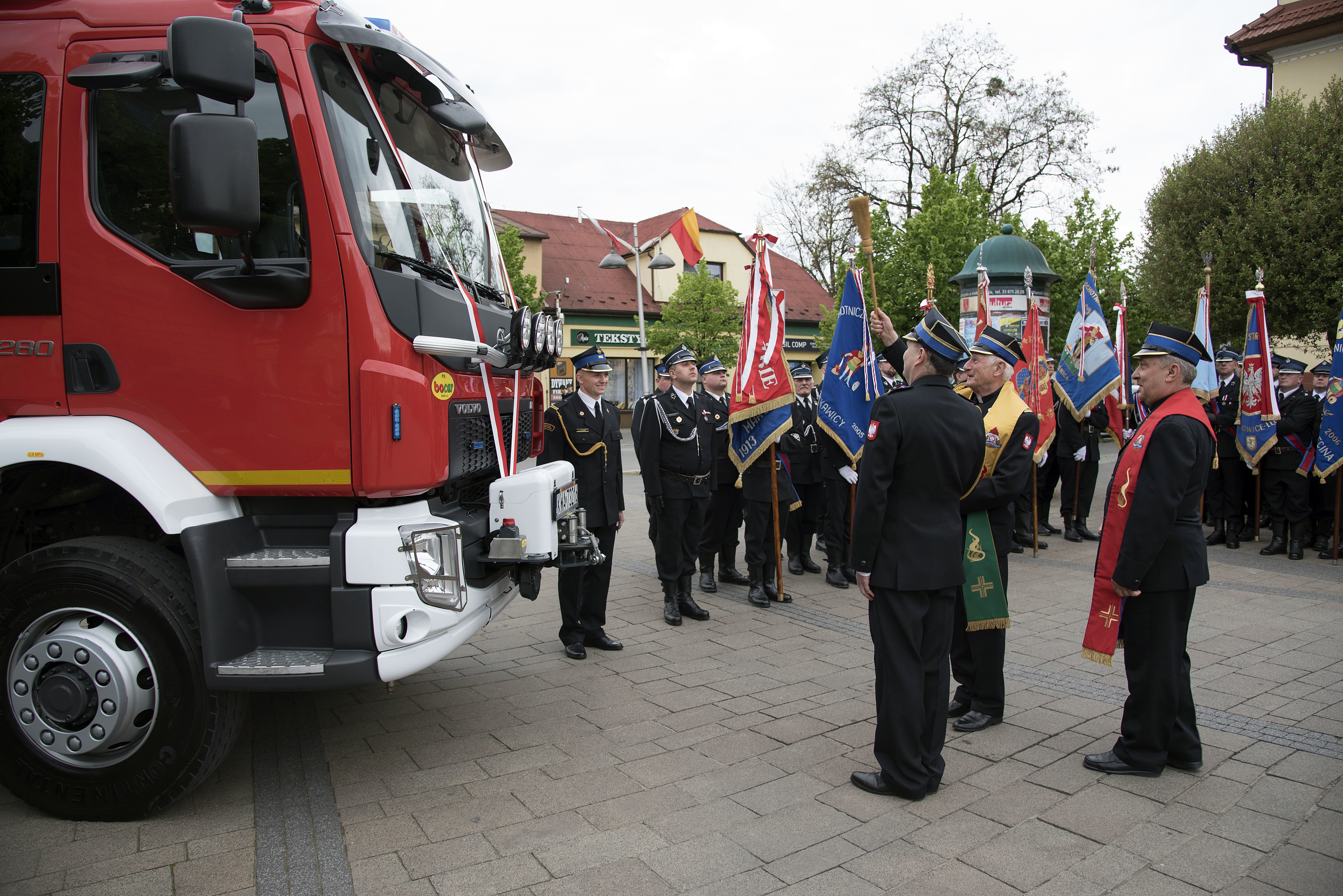 W następnej części uroczystości nastąpiło oficjalne przekazanie strażakom Jednostki Ratowniczo-Gaśniczej w Wadowicach średniego samochodu ratowniczo-gaśniczego marki VOLVO FL 280, którego zakup został sfinansowany poprzez Komendę Wojewódzką Państwowej Straży Pożarnej w Krakowie ze środków Narodowego Funduszu Ochrony Środowiska i Gospodarki Wodnej (497 473,50 zł), środków ubezpieczeniowych Komendy Głównej Państwowej Straży Pożarnej (37 473,50 zł), środków Gminy Kalwaria Zebrzydowska (250 000,00 zł), środków Starostwa Powiatowego w Wadowicach (200 000,00 zł0 oraz środków Gminy Andrychów (10 000,00 zł). Łączna kwota zakupu pojazdu to 994 947,00 zł.