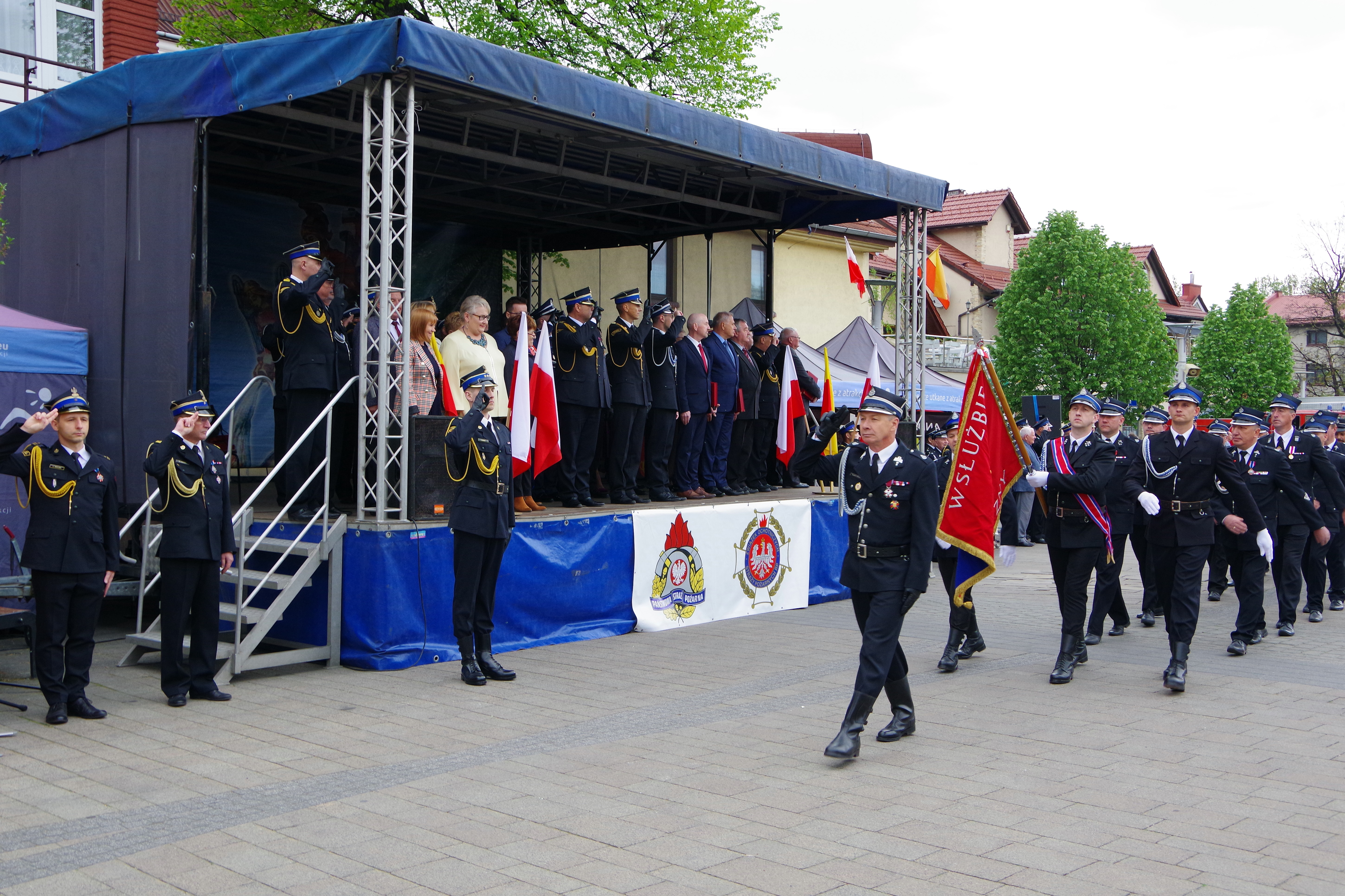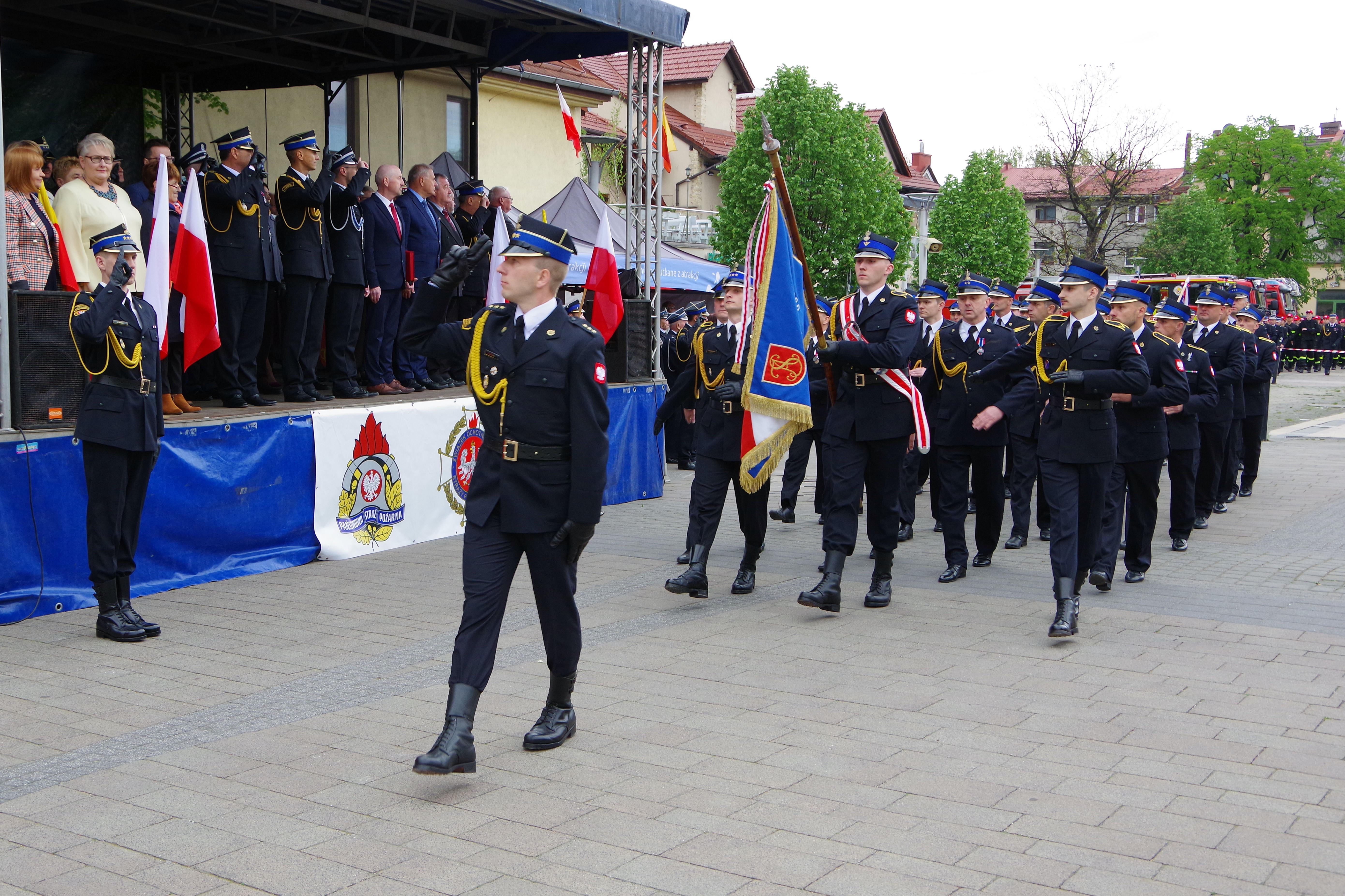 Poczet sztandarowy PSP w składzie: kpt. Jakub Proszkowiec, mł. asp. Bartosz Grzesło i mł. asp. Tomasz Maciejczyk wystawiła JRG w Andrychowie, a poczet flagowy w składzie: mł. kpt. Przemysław Wróbel, asp. Marek Kania i st. ogn. Łukasz Tomiczek – JRG Wadowice.