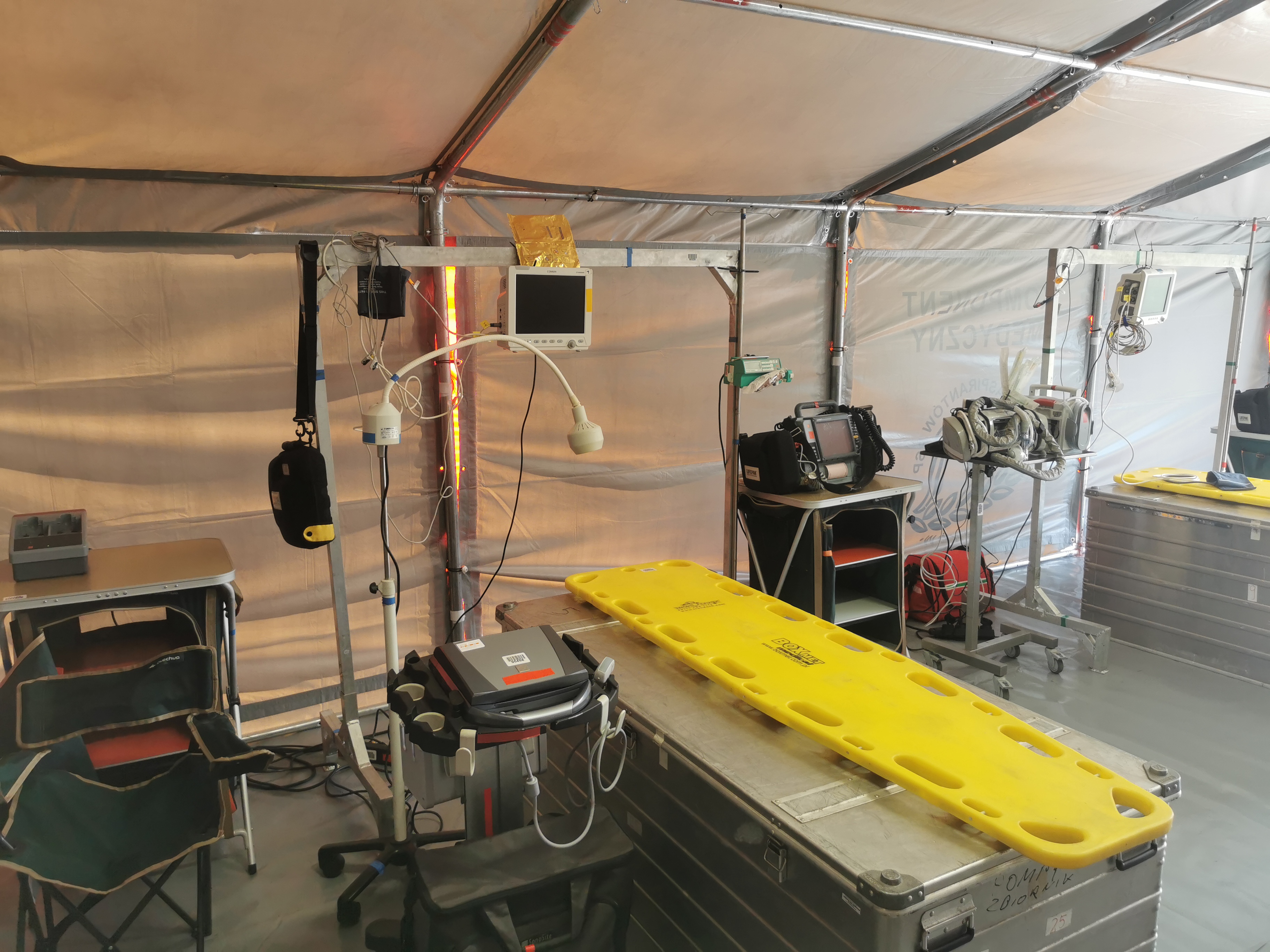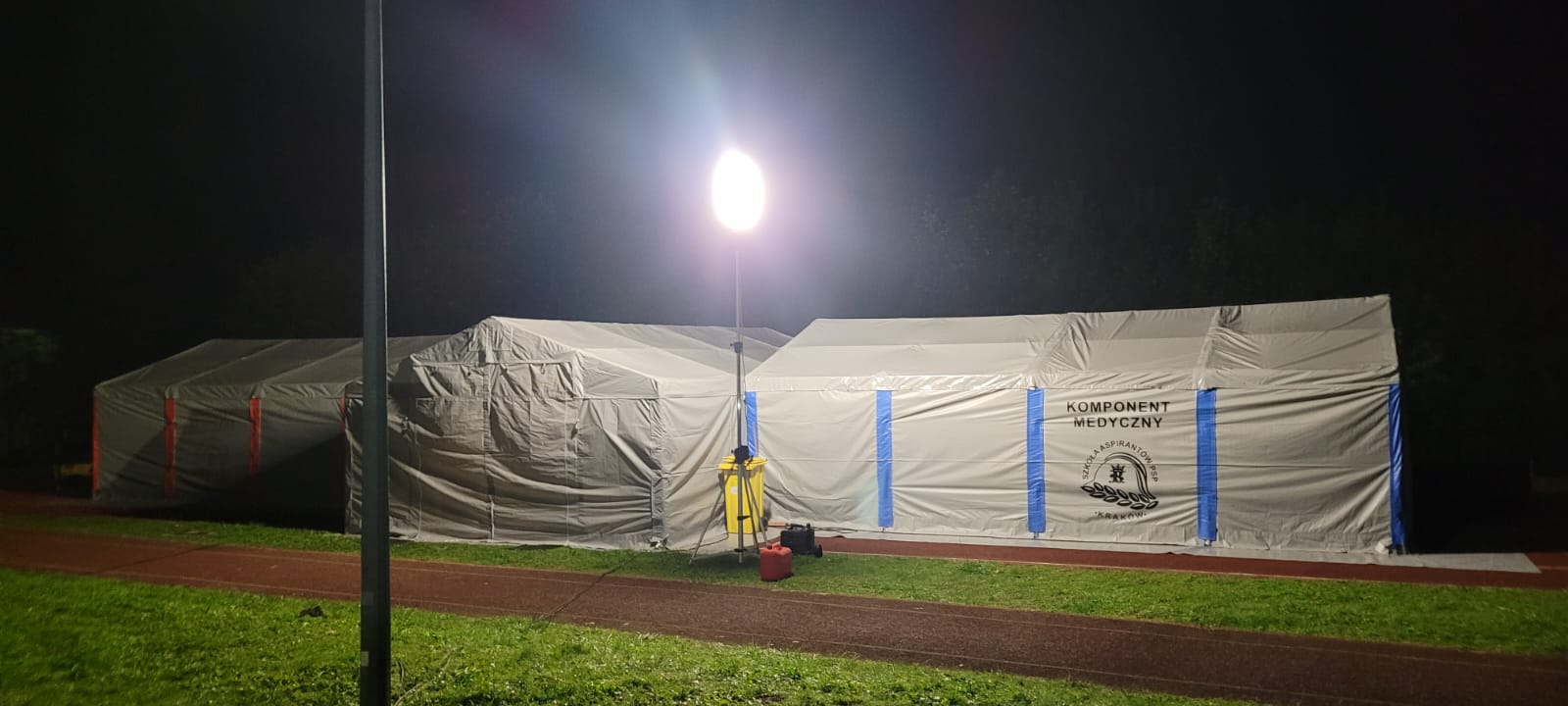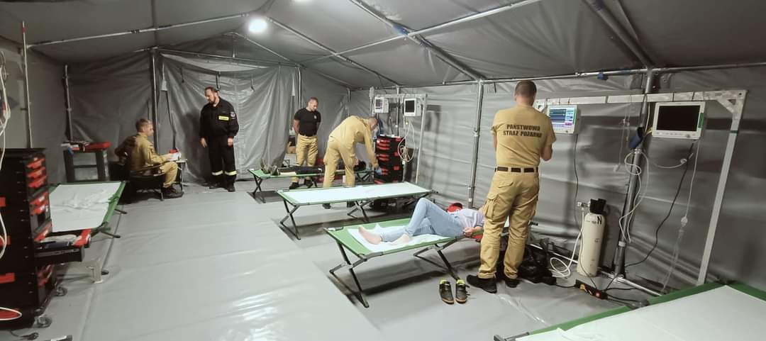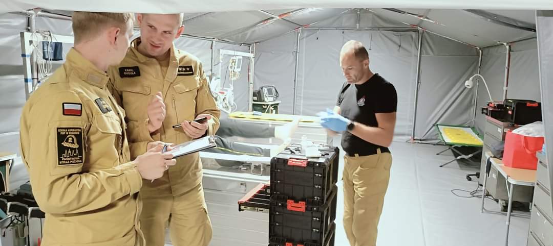 W związku z powyższym w dniu 19.09.2024 r. na polecenie Komendy Głównej Państwowej Straży Pożarnej zadysponowano do działań komponent medyczny ze Szkoły Aspirantów Państwowej Straży Pożarnej w Krakowie, którego obsadę stanowili funkcjonariusze SA PSP (4 ratowników + lekarz) oraz strażacy grupy ratownictwa medycznego „Małopolska 1” (6 funkcjonariuszy z Komend Powiatowych PSP woj. małopolskiego, w tym 1 z Komendy Powiatowej Państwowej Straży Pożarnej