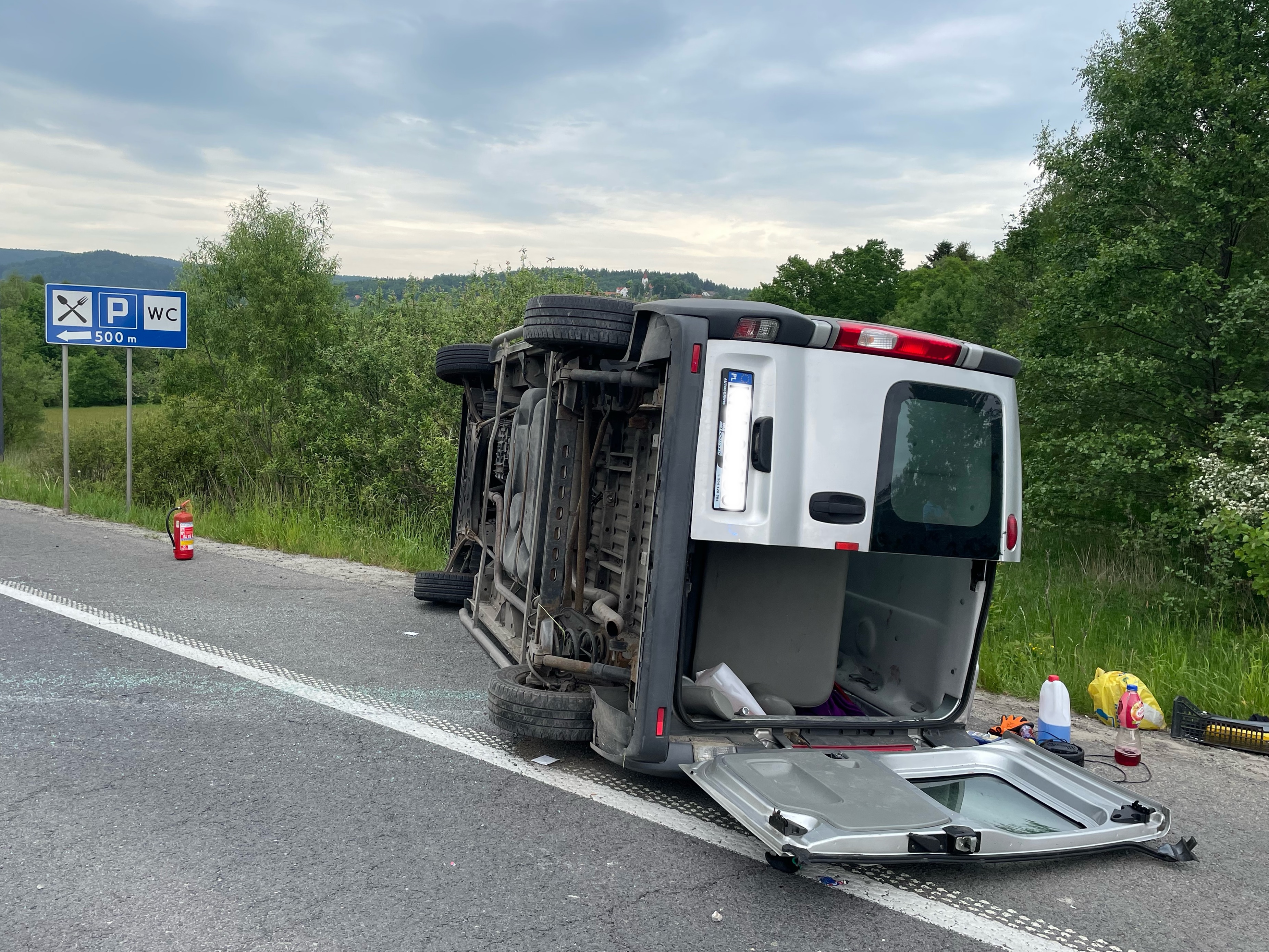 Z informacji wynikało, że doszło do wypadku komunikacyjnego pojazdu typu bus, w którym znajduje się 7 osób. Na miejsce zdarzenia zadysponowano siły i środki KP PSP w Wadowicach i KP PSP w Suchej Beskidzkiej, zastępy ochotniczych straży pożarnych z Mucharza i Kozińca a także zespoły Państwowego ratownictwa Medycznego i patrole Policji.