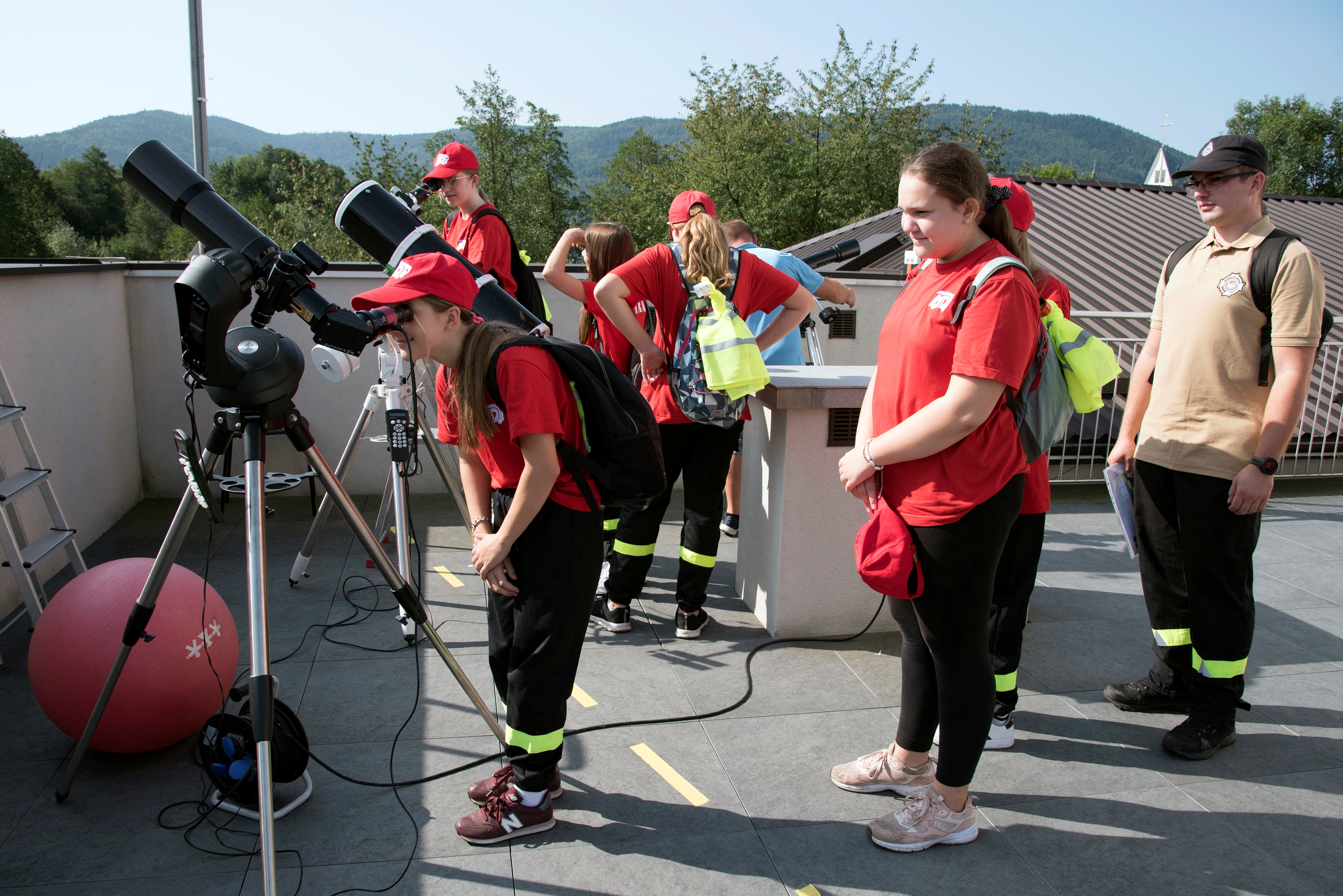 Po oficjalnym rozpoczęciu rajdu, którego dokonał prezes Zarządu Oddziału Powiatowego Związku OSP RP w Wadowicach druh Filip Kaczyński w obecności komendanta powiatowego PSP w Wadowicach st. bryg. Pawła Kwarciaka a także gospodarzy i zaproszonych gości, uczestnicy rozpoczęli zmagania w terenie, odwiedzając na wstępie Szkolne Obserwatorium Astronomiczne.