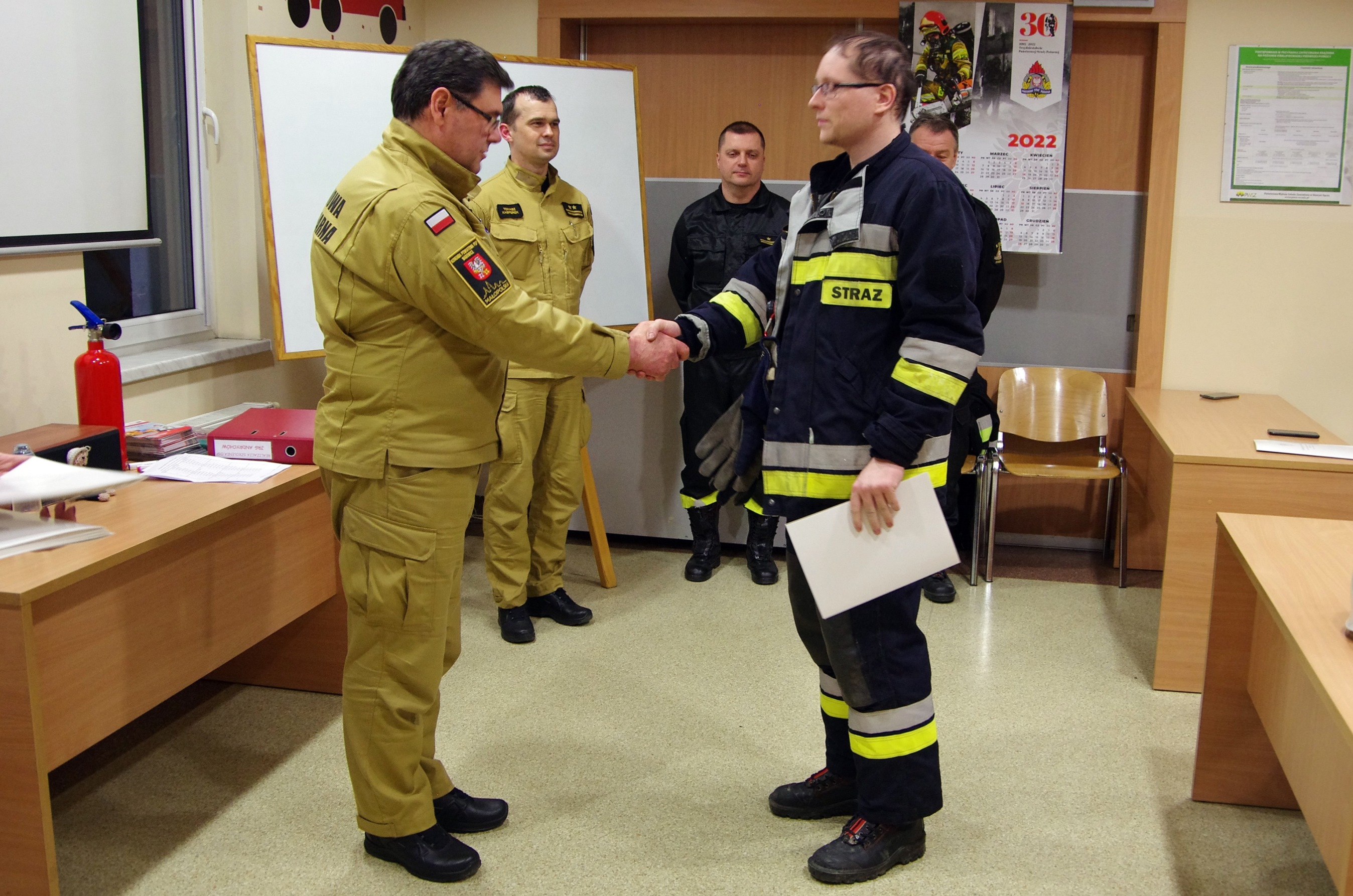 Na zakończenie szkoleń odbyły się uroczyste wydania kompletu zaświadczeń uprawniających absolwentów szkolenia do udziału w działaniach ratowniczych. Dokumenty, ze słowami powitania w szeregach strażaków-ratowników OSP, wręczyli komendant powiatowy PSP w Wadowicach st. bryg. Paweł Kwarciak (na szkoleniu w Andrychowie) oraz zastępca komendanta powiatowego PSP w Wadowicach bryg. Wojciech Grzybczyk (na szkoleniu w Wadowicach).