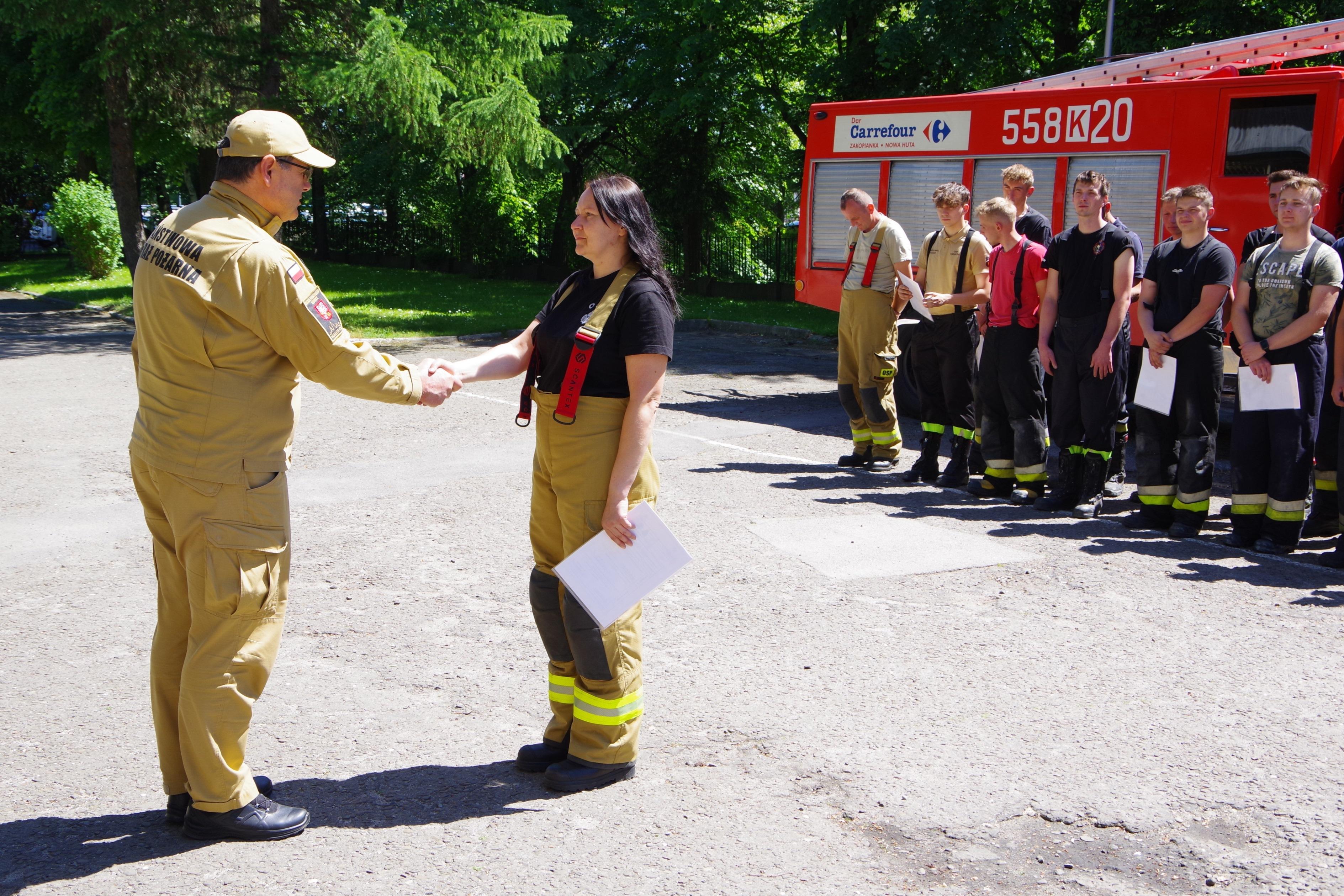 Na zakończenie szkolenia odbyło się uroczyste wydanie zaświadczeń uprawniających absolwentów szkolenia do bezpośredniego udziału w działaniach ratowniczych. Dokumenty, ze słowami powitania w szeregach strażaków-ratowników OSP, wręczył komendant powiatowy PSP w Wadowicach st. bryg. Paweł Kwarciak.