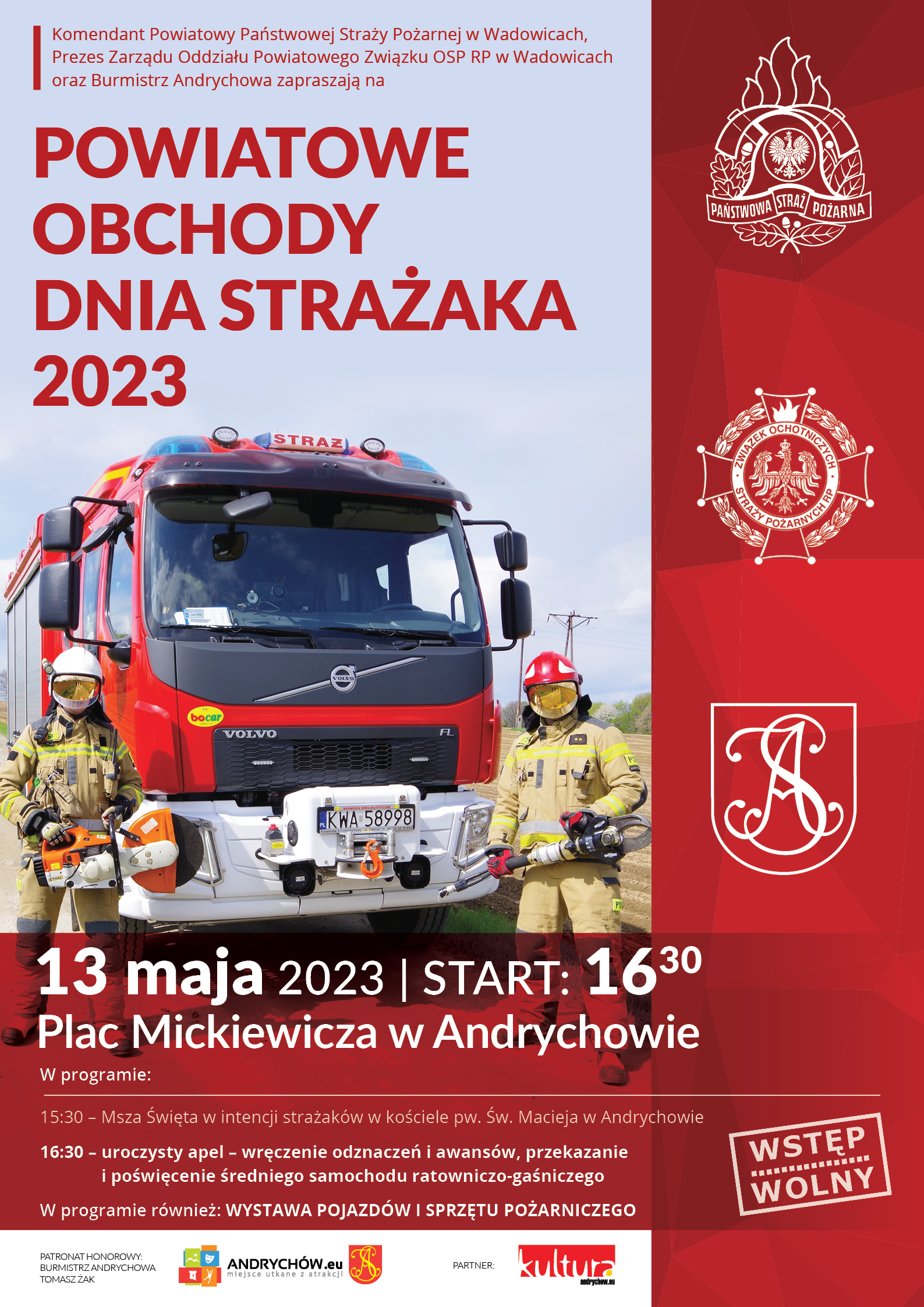 - 15:30 - Msza Święta w intencji strażaków w kościele pw. św. Macieja w Andrychowie