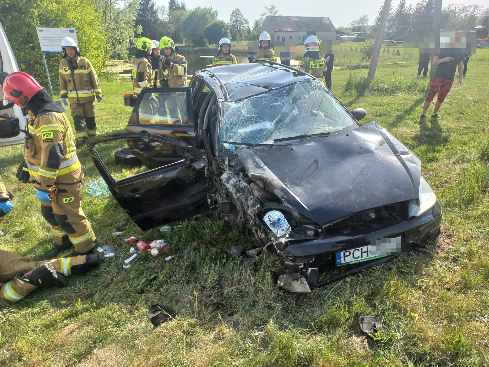 Po przyjeździe pierwszego zastępu straży pożarnej okazało się, że w zdarzeniu udział brał samochód osobowy i dostawczy. W wyniku rozpoznania ustalono, że jeden z pojazdów dachował, a obecny na miejscu zdarzenia Zespół Ratownictwa Medycznego zaopatrywał medycznie osobę poszkodowaną.