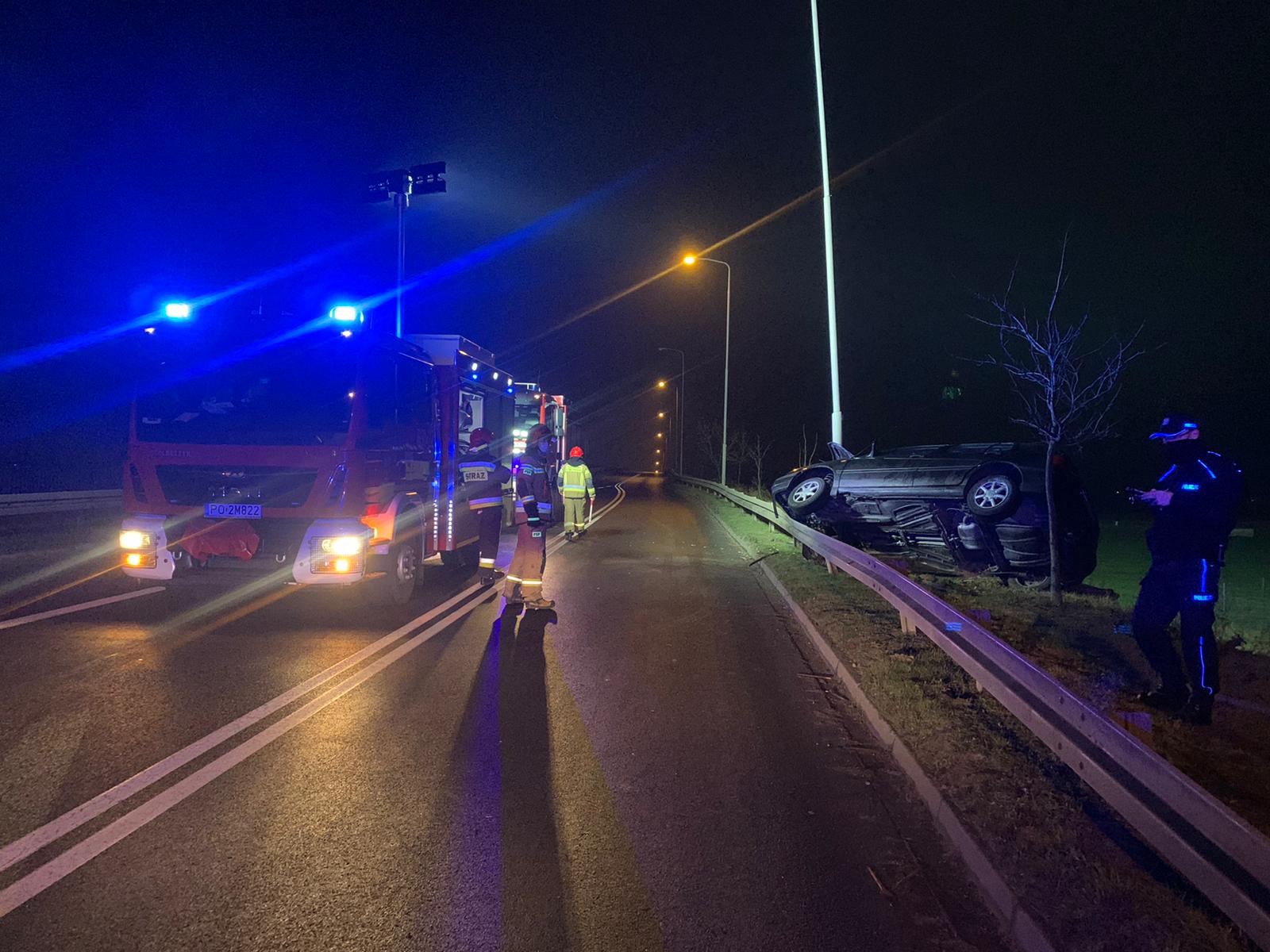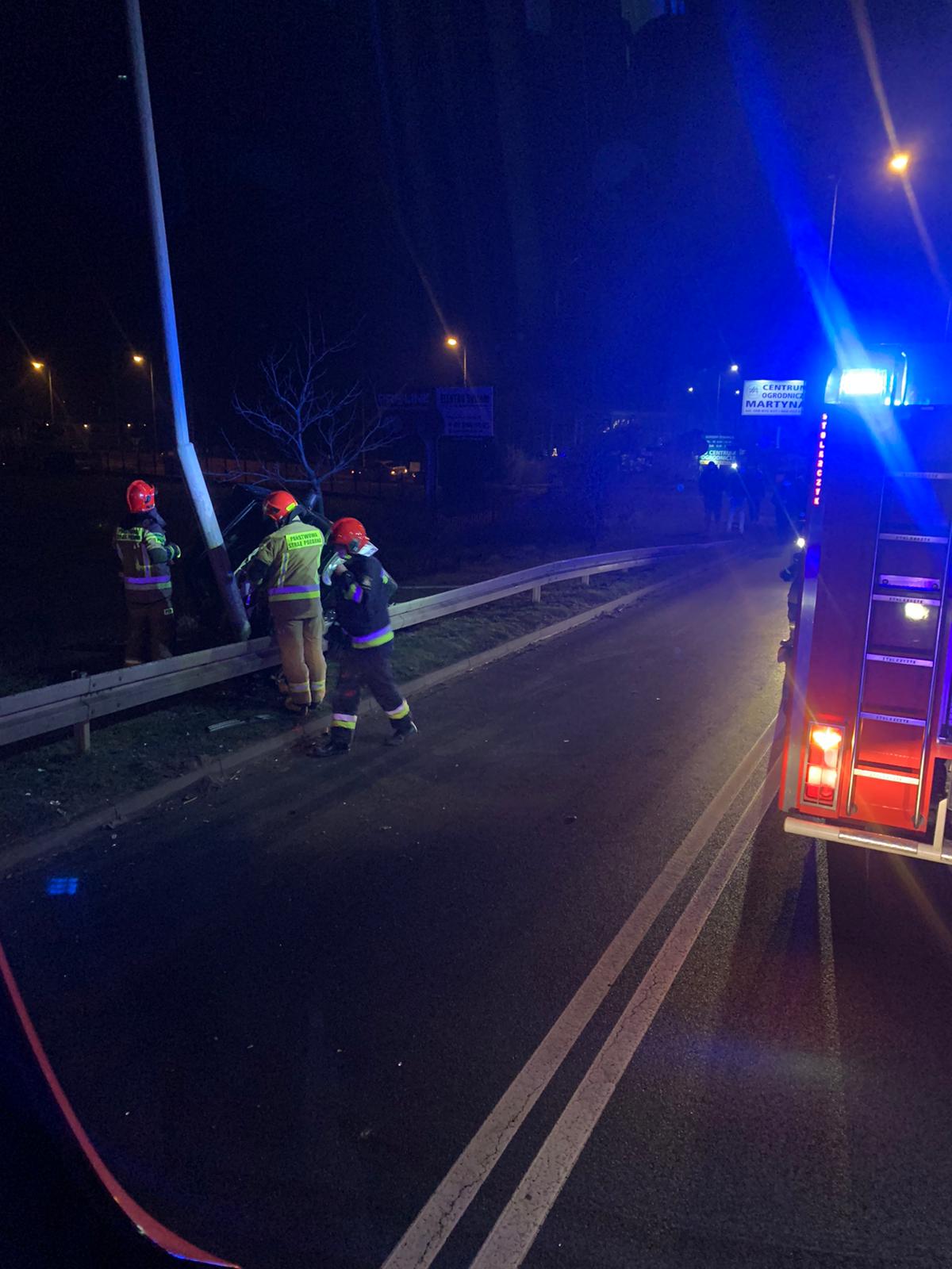 Po przyjeździe na miejsce zdarzenia pierwszych zastępów straży pożarnej okazało się, że auto osobowe po zderzeniu z barierą energochłonną wypadło z drogi i zatrzymało się na przydrożnej latarni, brak osób poszkodowanych.